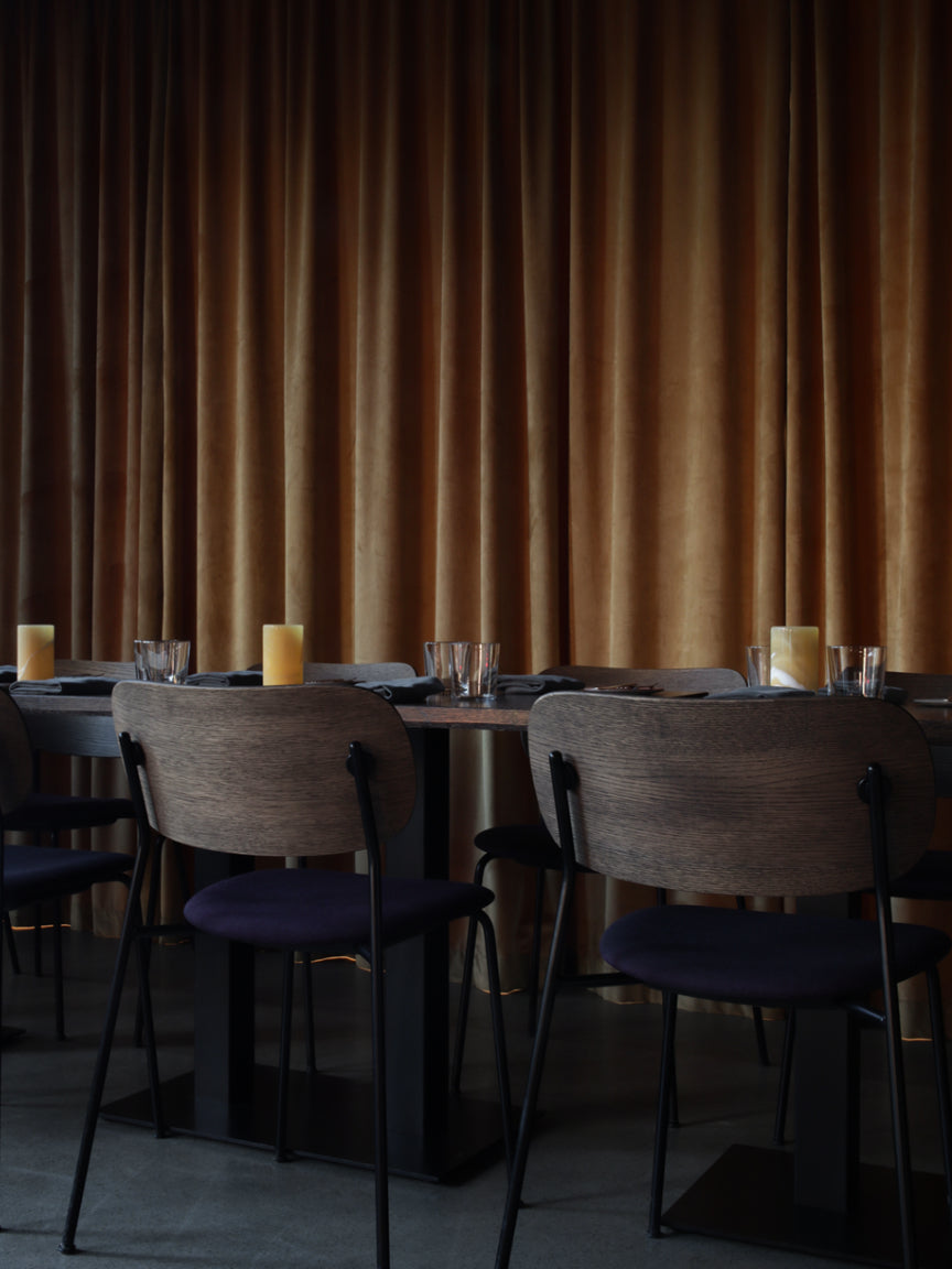 Furnished with pieces from Audo Copenhagen, including the Harbour Bar Chair, Co Dining Chair, and Afteroom Bar Stool, the restaurant captures the essence of modern Nordic design — functional, tactile, and effortlessly elegant. These sculptural yet understated pieces anchor the space, complementing the restaurant’s fluid architectural lines and creating an atmosphere that feels refined yet approachable.