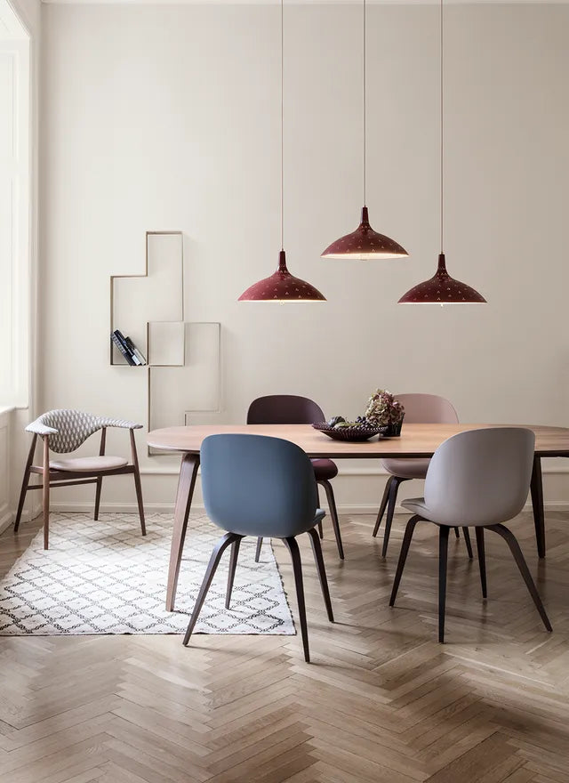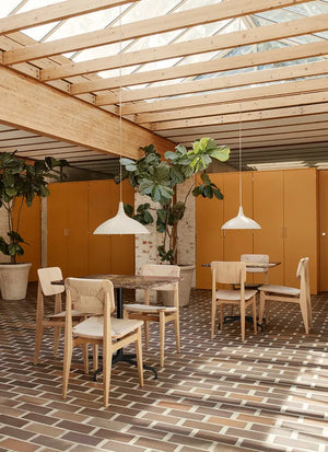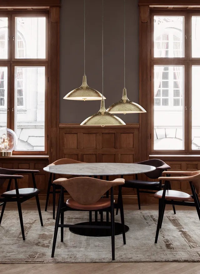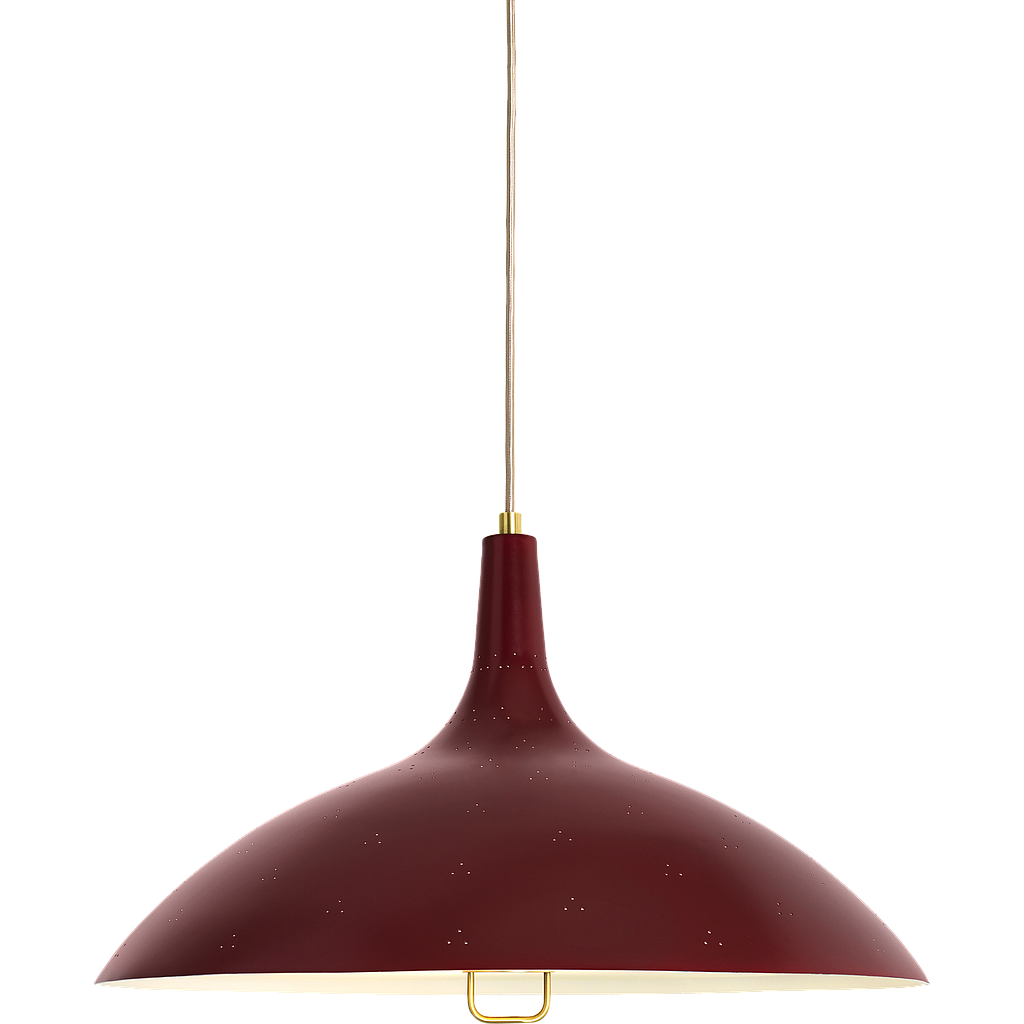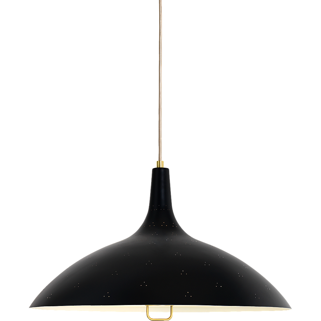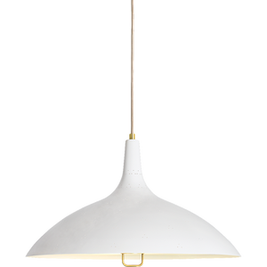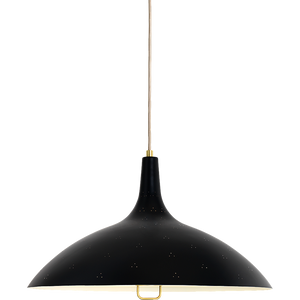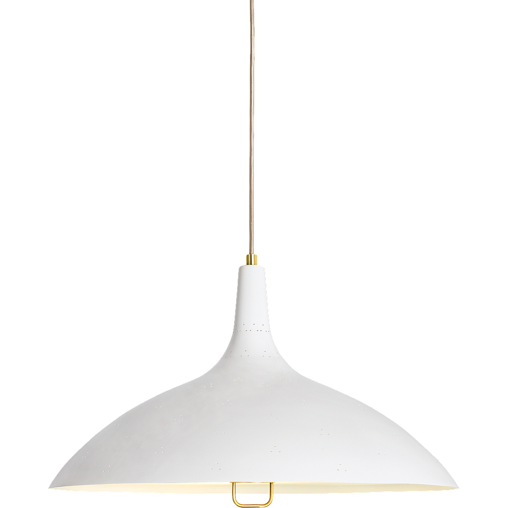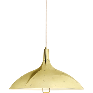 The 1965 Pendant was originally designed by Paavo Tynell in 1948. Like many of his best-known designs, the pendant was designed for the Finland House in New York - one of the most ambitious and successful projects of all time to showcase Finnish design. Perfecting the techniques of metal finishes, Tynell developed the 1965 Pendant with his exceptional ability to capture and translate a grace and exuberant lightness into his brass creations. Characterized by its triangular perforation pattern, an artistic detail utilised by Tynell in several of his lighting objects, the 1965 Pendant reflects the distinguished craftsmanship of the Finnish designer. With a frosted glass diffuser that softens the light, the pendant contributes to a subtle and tranquil environment.