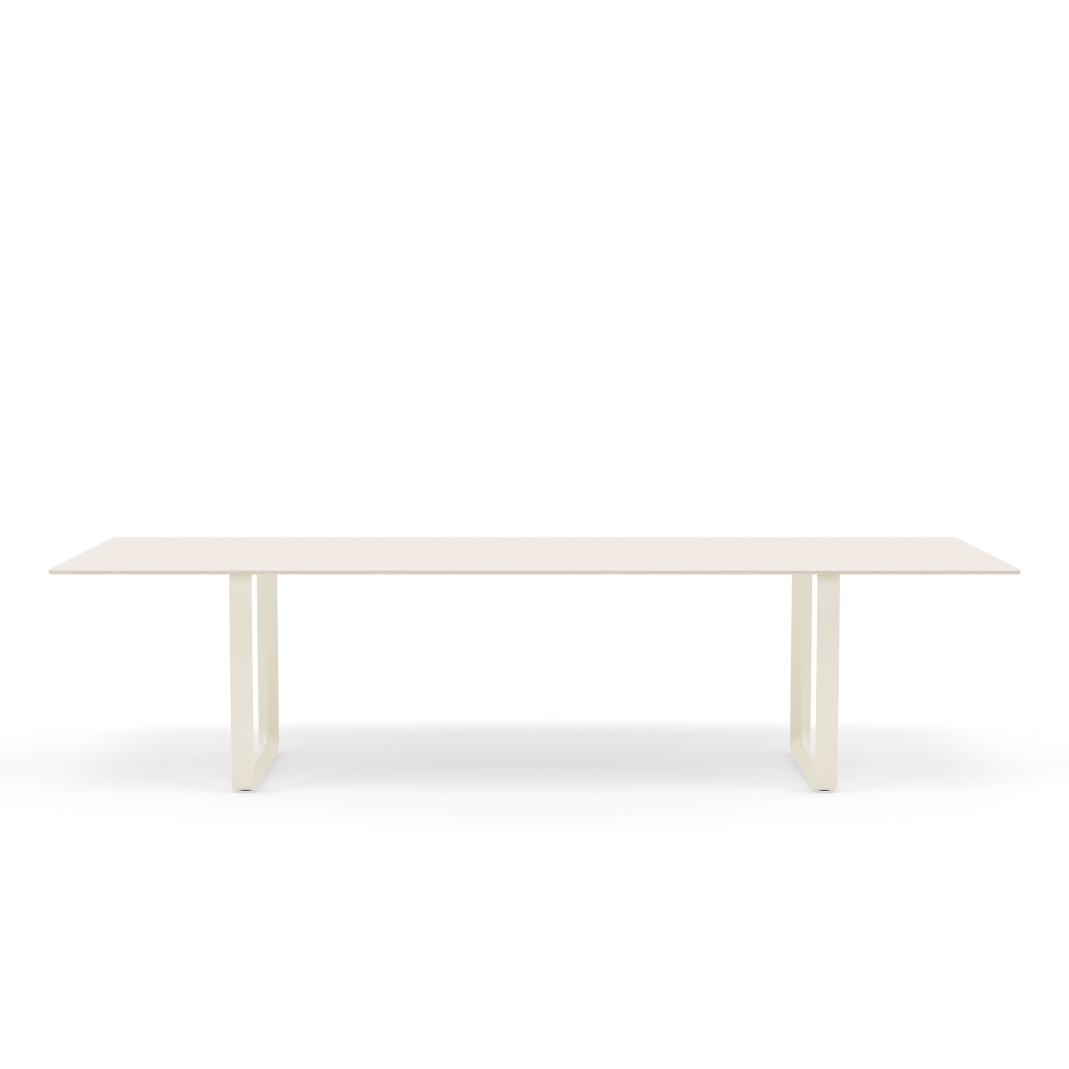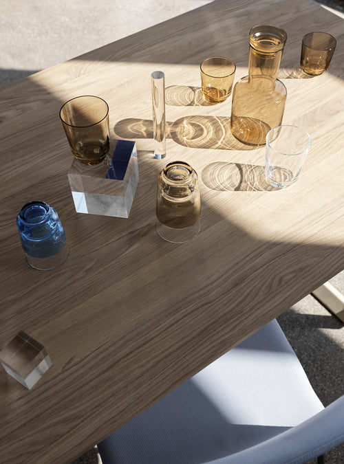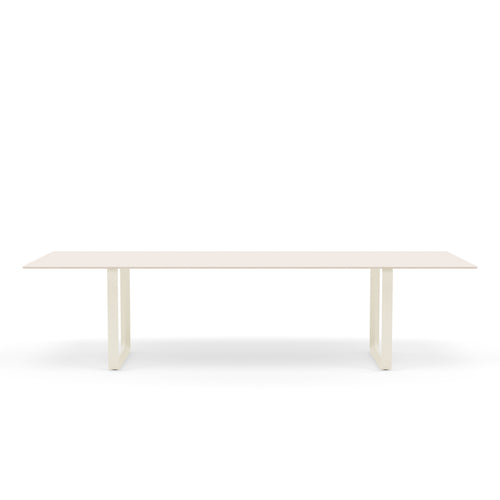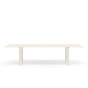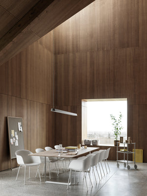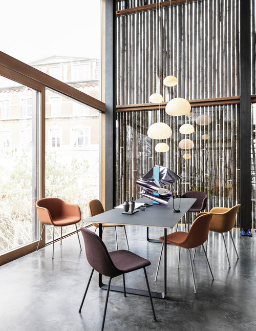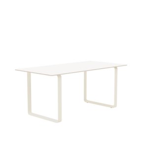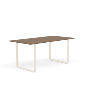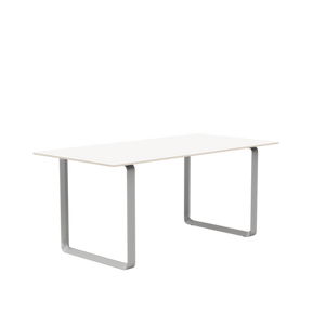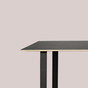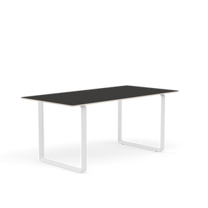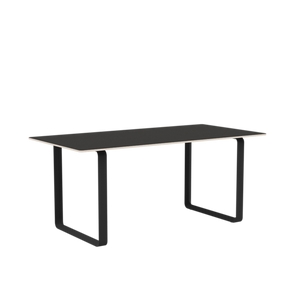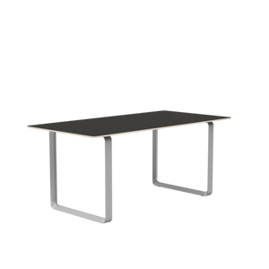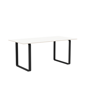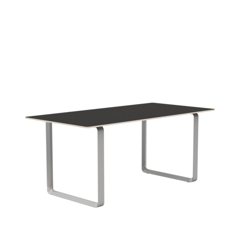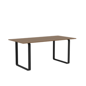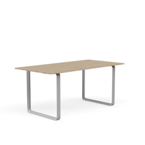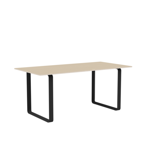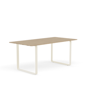 Tabletop in plywood with lacquered oak veneer surface, Black and Grey version in plywood with linoleum surface, White and Sand version in plywood with laminate surface (HPL). Solid Oak and Solid Smoked Oak tabletop in FSC™-certified (FSC-C028824) oak. Frame in powder coated aluminum. Laminate & Linoleum: Clean the table with a damp cloth. If necessary, only use a mild detergent or washing up liquid and not concentrated. Always wipe with a dry cloth afterwards. To minimize the risk of stains and marks, liquid, grease etc. should be removed straight away. For linoleum versions, linoleum care is recommended for optimum saturation of the natural material 2-3 times a year. It is recommended to clean linoleum versions with a damp cloth and a pH neutral cleaner and wipe dry to remove any residues. Solid Oak & Solid Smoked Oak: Clean often and carefully with a soft and dry cloth following the grain pattern. Periodically, clean with moist cloth. For long term care, it is recommended that the tabletop is treated 2-3 times a year with special oak wood oil on both top and bottom of tabletop that assists with making the wood resistant to stains and fluids. The wood should not be exposed to excessive humidity, heat or direct sun light. Oak Veneer: Clean the table with a damp cloth. If necessary, only use a mild detergent or washing up liquid and not concentrated. Always wipe with a dry cloth afterwards. To minimize the risk of stains and marks, liquid, grease etc. should be removed straight away.- Height: 29"