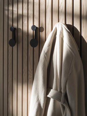 The Afteroom Coat Hanger draws inspiration from Bauhaus principles: well-crafted, functional and minimalist design with geometric shapes that infuse a sense of clarity. Easily affixed to a wall, with hidden screws that underpin its clean aesthetic, circular ‘dots’ in powder-coated metal allow you to hang clothing, bags and more in a hallway or bedroom. It can be hung both horizontally and vertically, beautifying blank walls in any space by transforming walls from stark canvases into works of art.