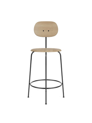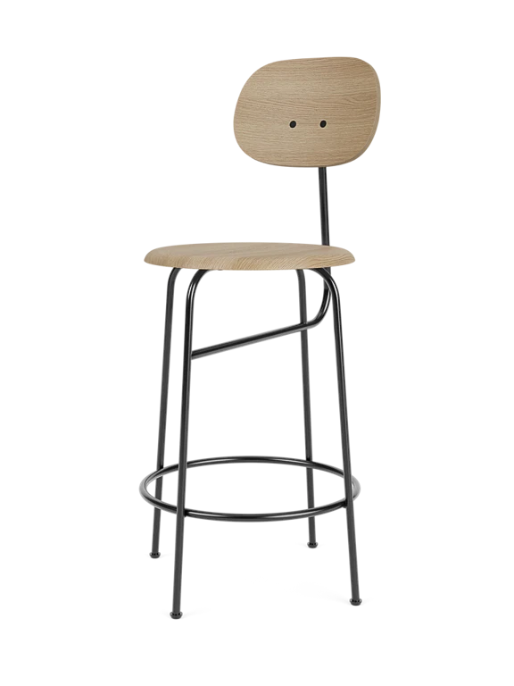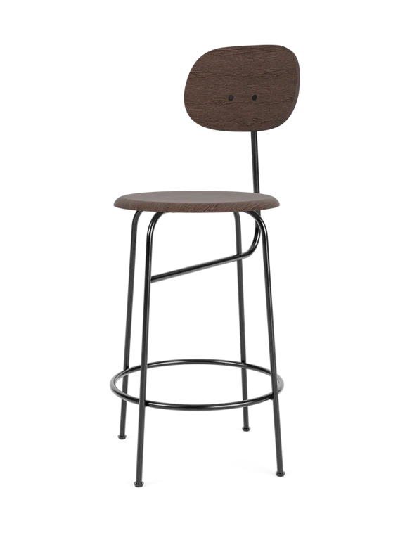 An homage to functionalism, the Afteroom Counter Chair Plus is a deconstructed design, stripped of unnecessary components to present a clean, minimalist aesthetic with high functional value. Its wide backrest and generous seat in wood veneer ensure supreme sitting comfort, while the slender powder-coated metal frame is constructed for maximum stability with a foot ring that does double duty as a rest for feet. The result is a blissfully simple chair that embraces minimalism and clean lines without compromising on comfort.