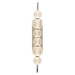 Like a gorgeously beaded garment, the Marni collection adds luxury and interest to any design. Meticulously cut-acrylic shades create glittering beams of illumination throughout the design. Available in Polished Nickel and Natural Brass accompaniments. Table lamp configuration is available in Natural Brass with Natural Linen Shade and Polished Nickel with White Linen Shade.