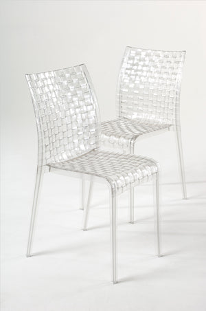 Inspired by the way pattern and texture interweave in a fabric, the Ami Ami chair (its name in Japanese literally means "to weave"), was born of designer's wish to reproduce one of the stylistic icons typical of his country - weaving. The simple squared off lines contrast with the richness of the weaving and this is achieved on the inner and outer surfaces through a complex industrial process which recreates the motif using a single mould.