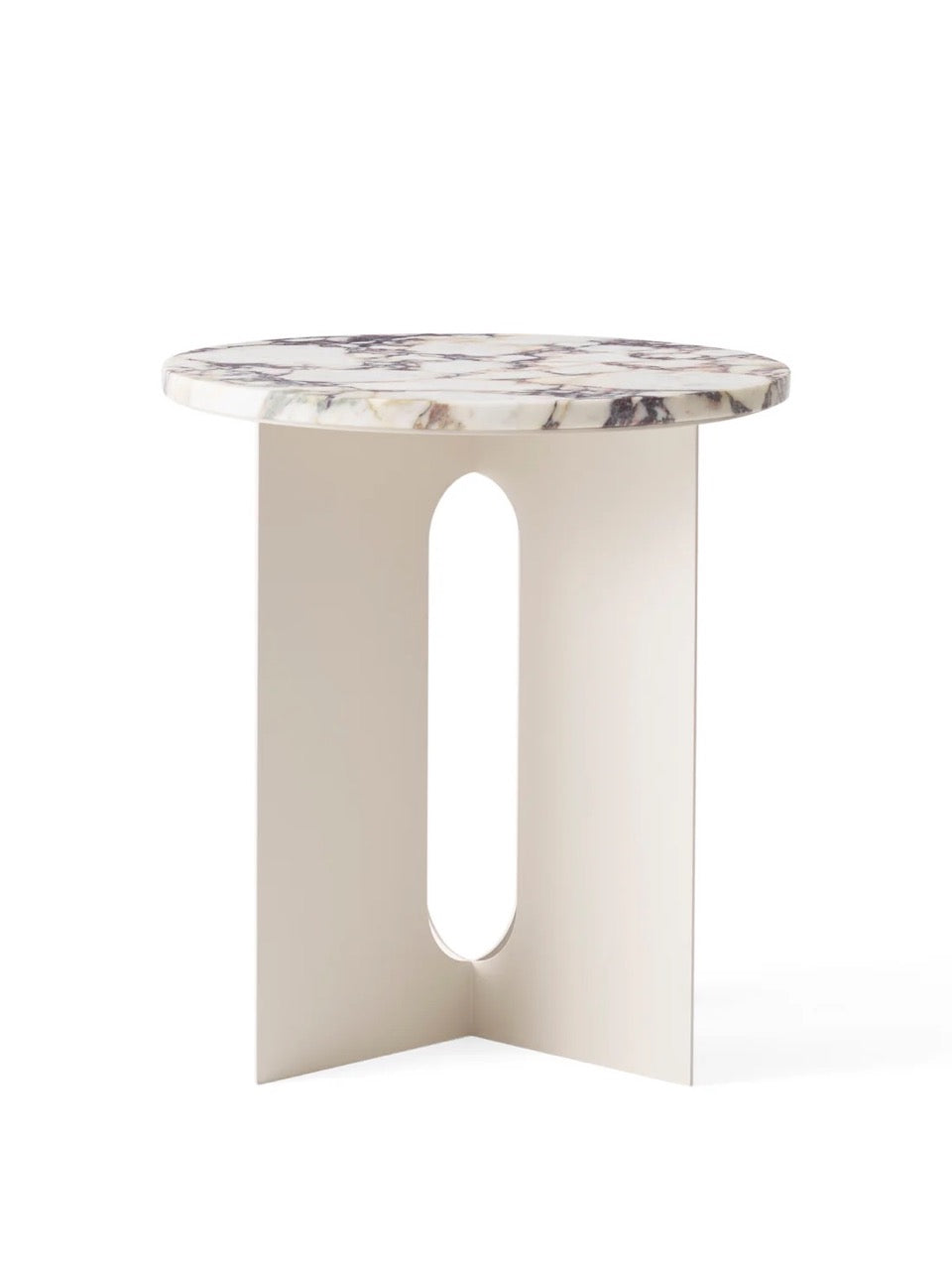The Androgyne Side Table was designed by Copenhagen-based Norwegian architect and designer Danielle Siggerud. It comes in black and ivory, with laser-cut steel legs. It can be purchased with a different variations of marble tops or, the base-only functions as an all metal version of the table. The table’s sense of balance, proportion and mixed materials affords a sense of harmony. This blend of the masculine and feminine— true androgyny—is what lends the table its name. The essence of the table is its duality; it is elegant yet powerful.