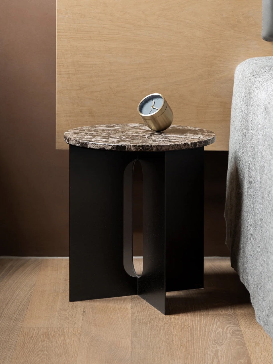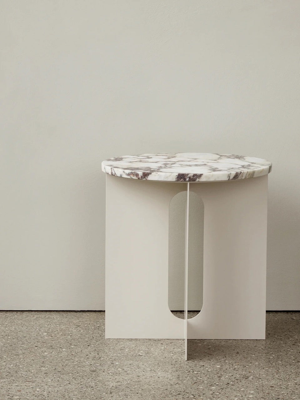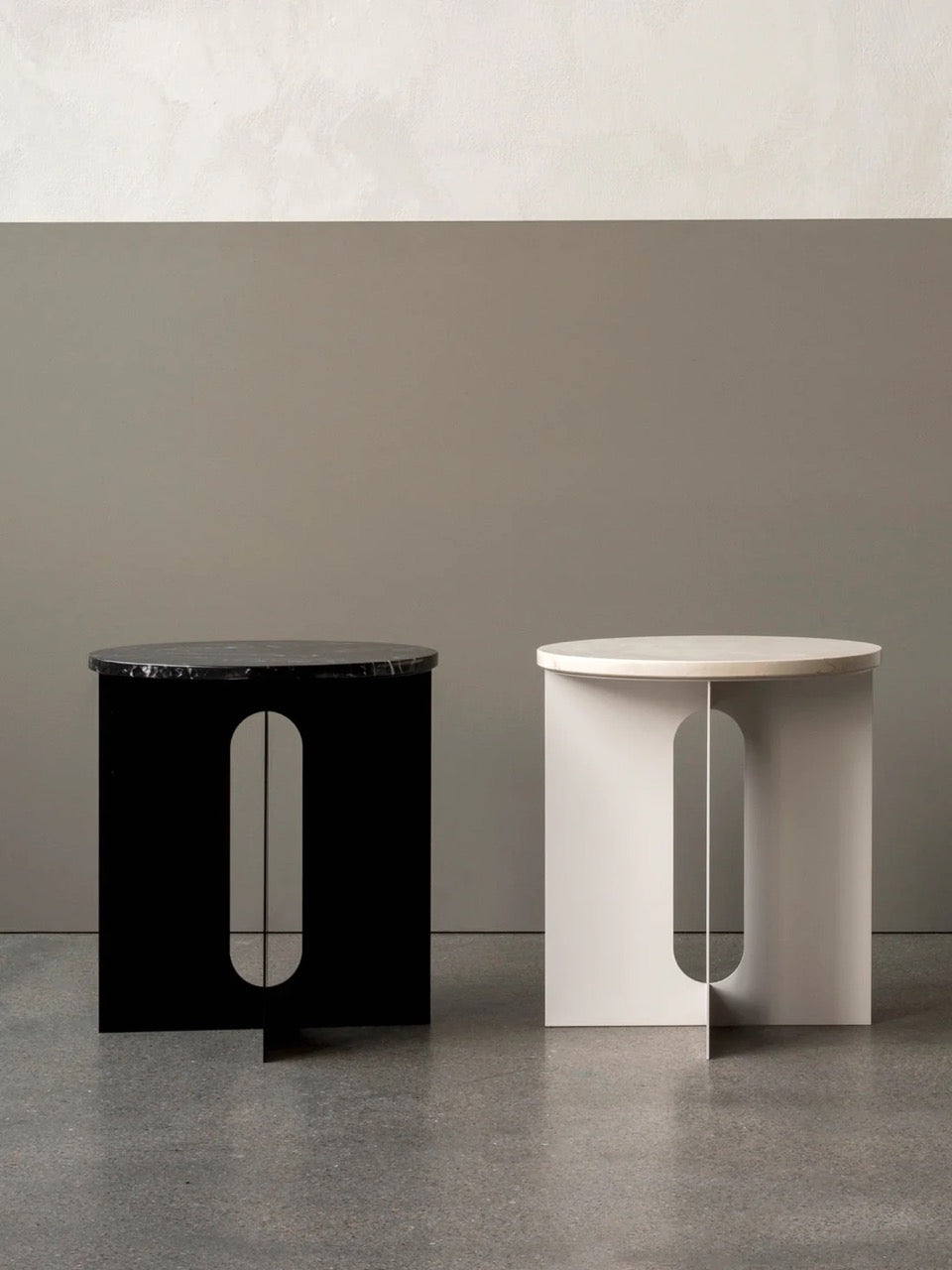 Distinguished by its playful yet elegant silhouette, the Androgyne Side Table was first designed for the Audo Space cafe but quickly went into production for a larger audience. The table’s refined marble top and contrasting wide, flat legs make it an easy fit for a range of décors.
