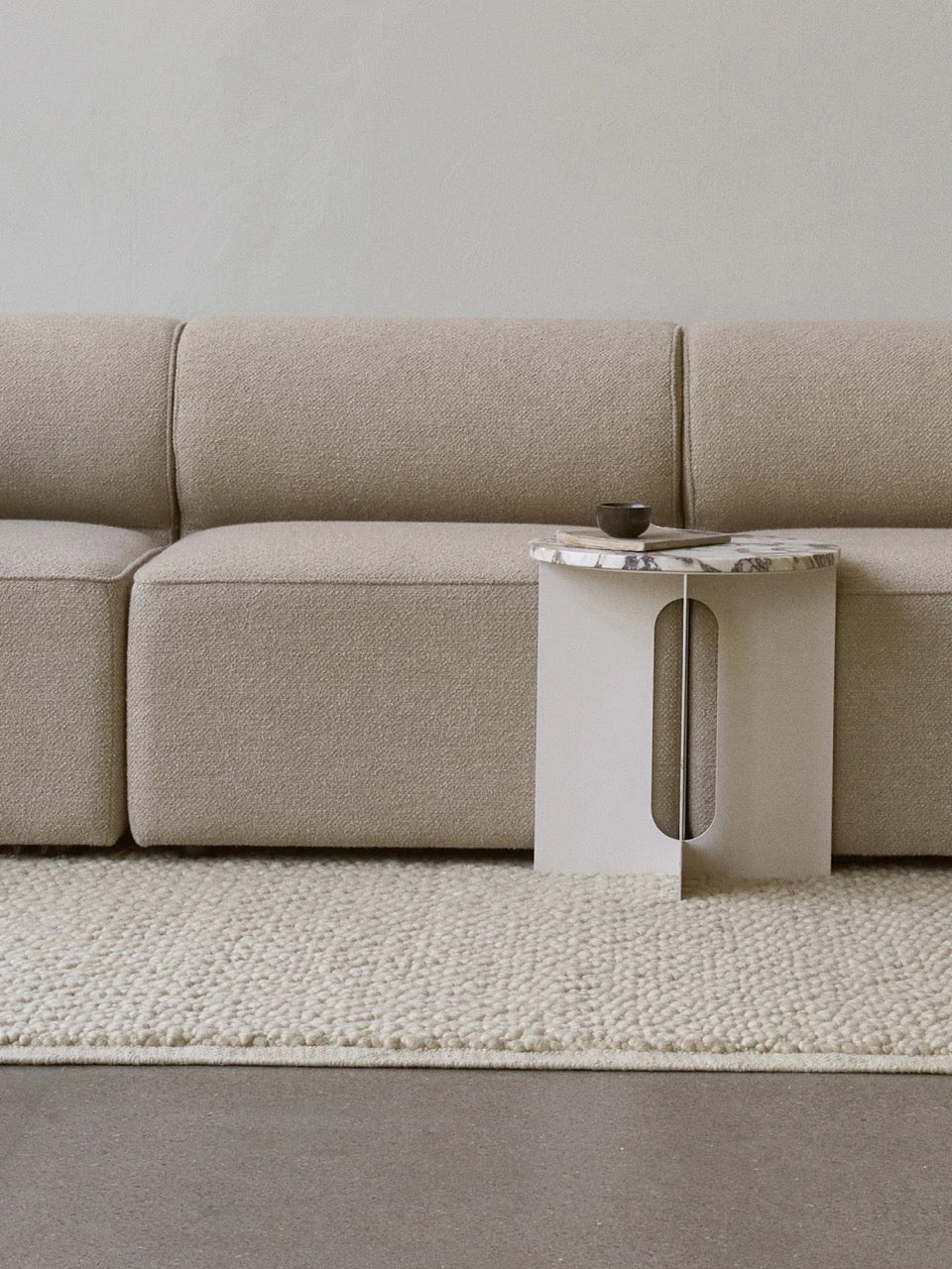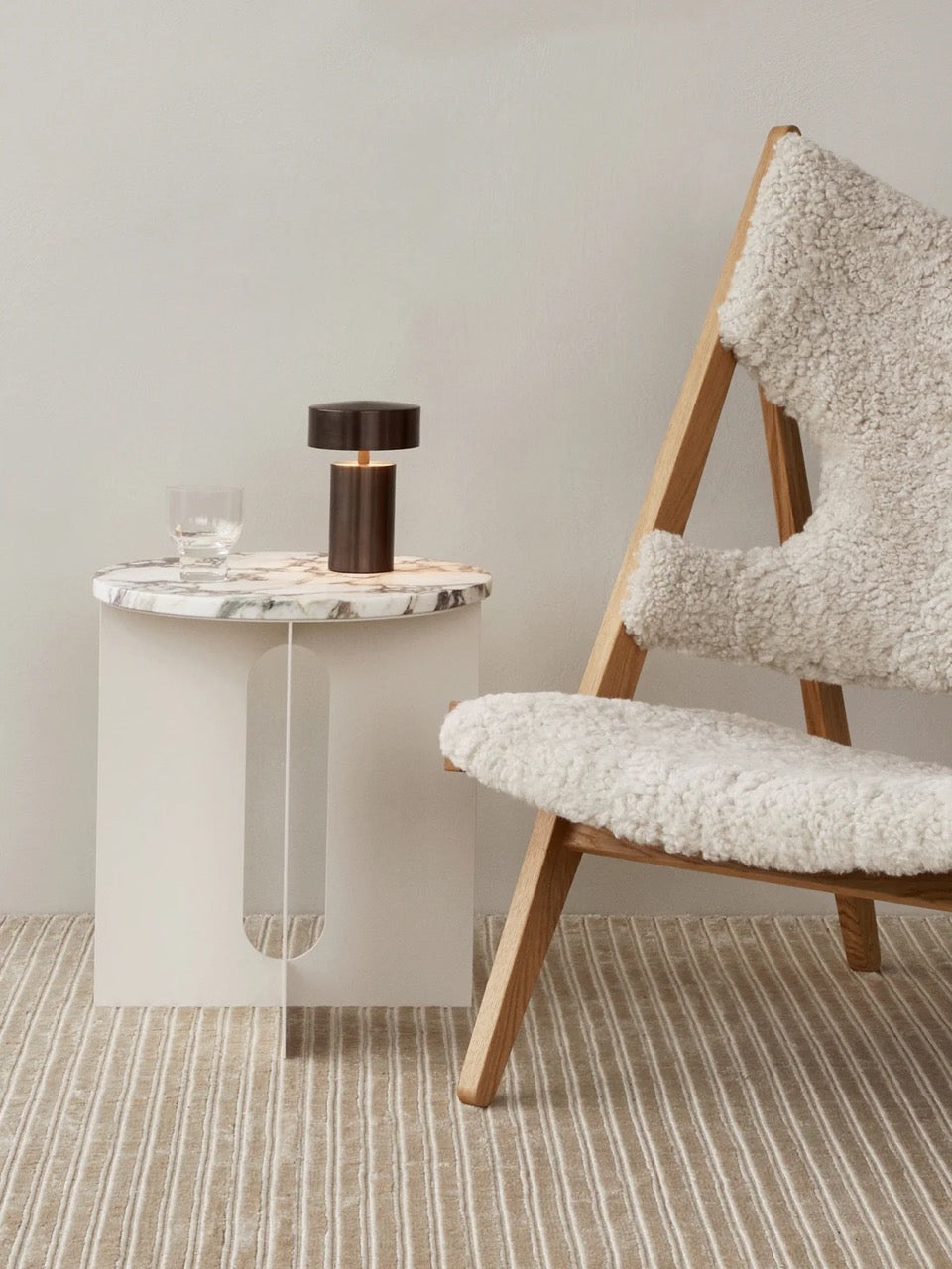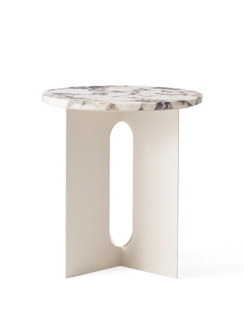 Distinguished by its playful yet elegant silhouette, the Androgyne Side Table was first designed for the Audo Space cafe but quickly went into production for a larger audience. The table’s refined marble top and contrasting wide, flat legs make it an easy fit for a range of décors.