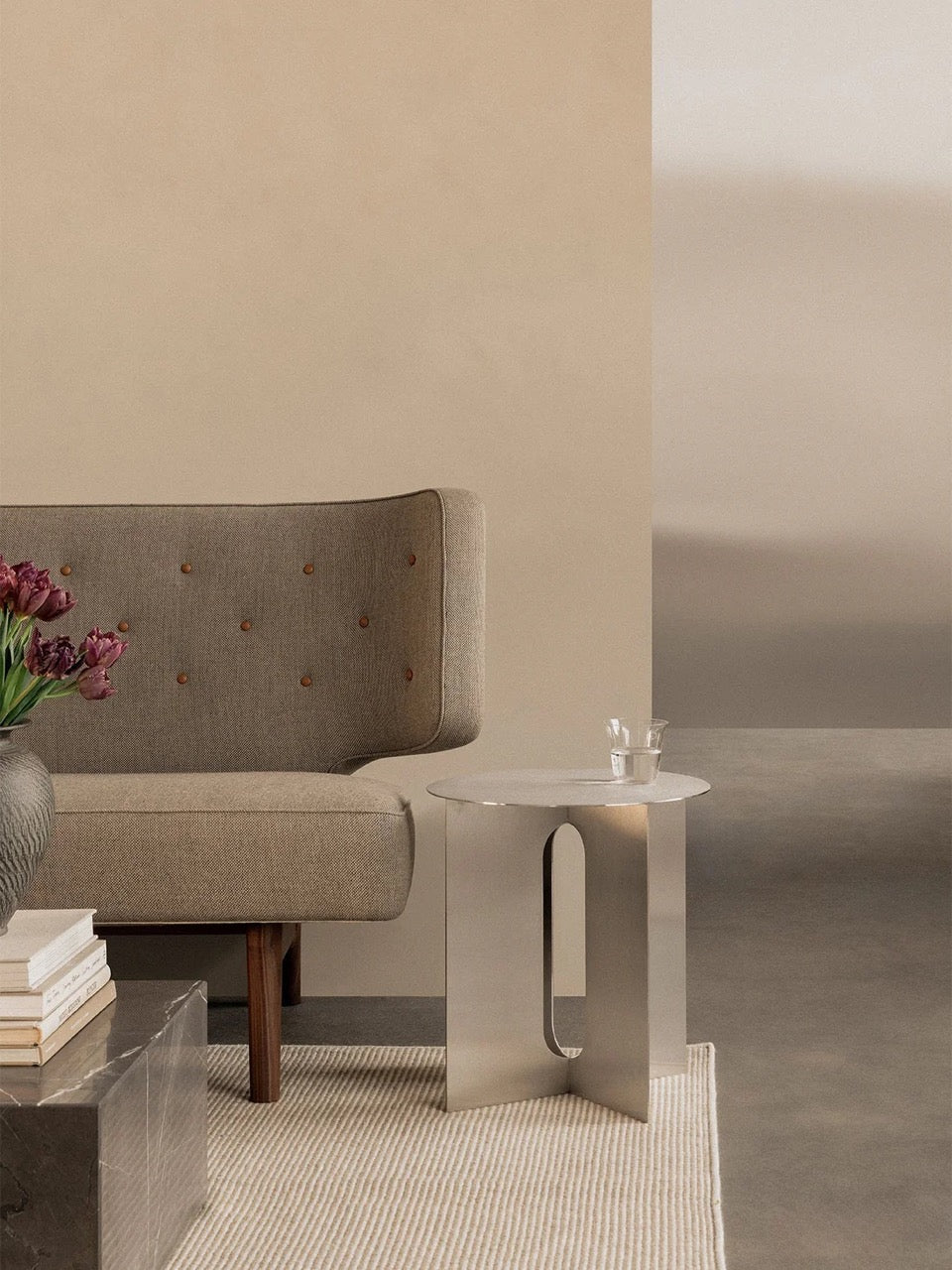 Distinguished by its playful yet elegant silhouette, the Androgyne Side Table was first designed for the Audo Space cafe but quickly went into production for a larger audience. The table’s refined marble top and contrasting wide, flat legs make it an easy fit for a range of décors.