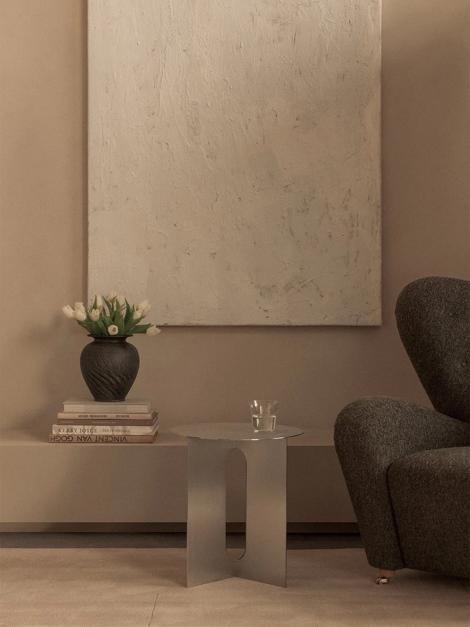 The Androgyne Side Table was designed by Copenhagen-based Norwegian architect and designer Danielle Siggerud. It comes in black and ivory, with laser-cut steel legs. It can be purchased with a different variations of marble tops or, the base-only functions as an all metal version of the table. The table’s sense of balance, proportion and mixed materials affords a sense of harmony. This blend of the masculine and feminine— true androgyny—is what lends the table its name. The essence of the table is its duality; it is elegant yet powerful.
