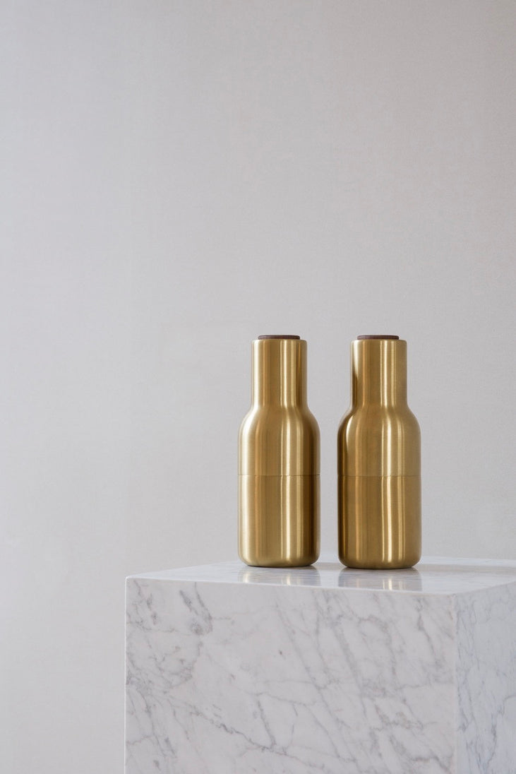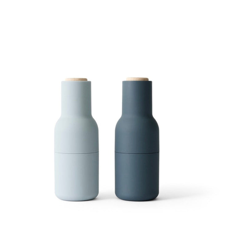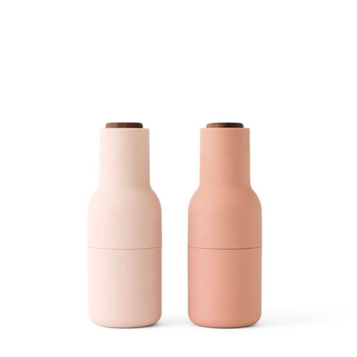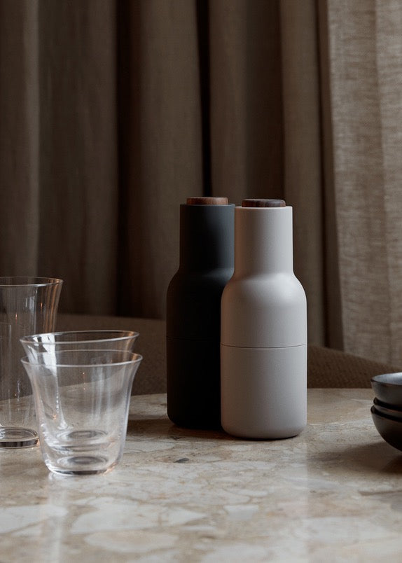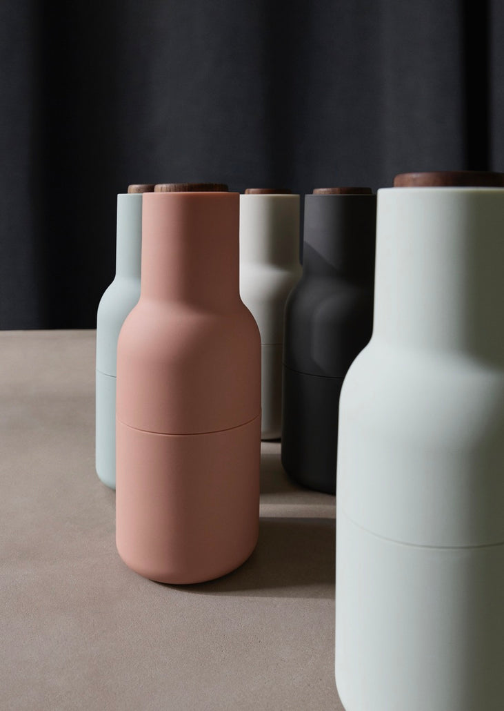 The unique, inverted design ensures that whatever you fill them with only sprinkles out when you grind, leaving no trace on the table or in the kitchen. The Grinders have a bottle-like shape, which is also important to the whole experience. Designer Kasper Rønn, From a shape like this, you’d expect the content to be something liquid like oil or dressing, you’re not at all expecting dried up spices or nuts. We used this shape to surprise and somewhat trick the users. Sometimes people need a bit of a surprise in order to change their habits”. Audo Bottle Grinders have a rounded base that fits perfectly into the hands, and have a rubber surface that’s easy to grip and to clean. They come in a range of beautiful, soft Scandinavian colors. Bon appétit.