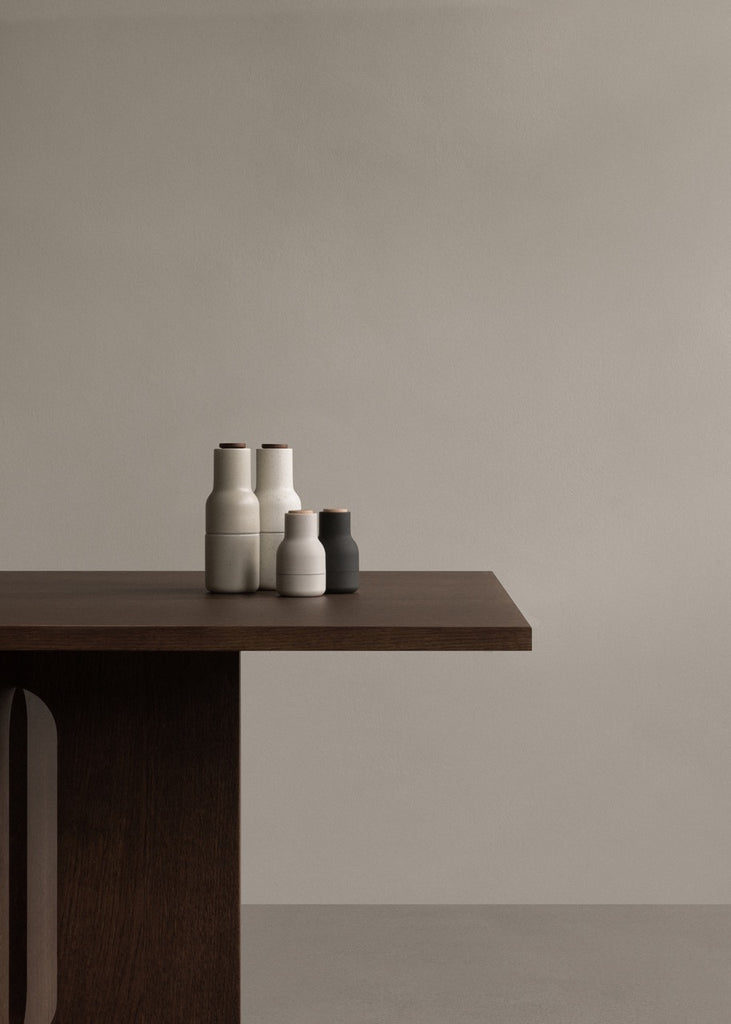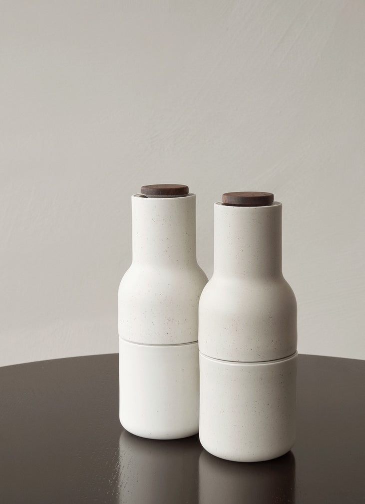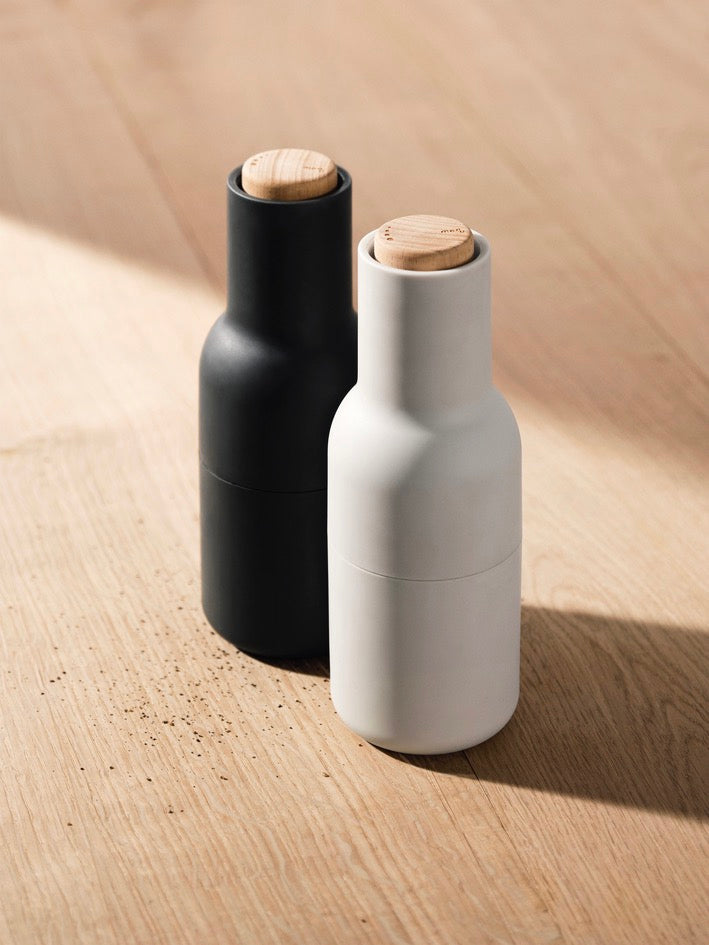 Steering away from the predictable grinder, the Norm 'Bottle Grinder' is not what you expect to see in a salt and pepper grinder. The form, shaped more like a bottle, cleverly tricks the user to encourage a more playful and experimental interaction with the product. The powerful ceramic mechanism makes the grinder easy to operate and perfect for trying out more than just salt and pepper including spices and grains, nuts, seeds or dried fruits. You simply open them, fill them with delicious ingredients and close them again. Simple as that.