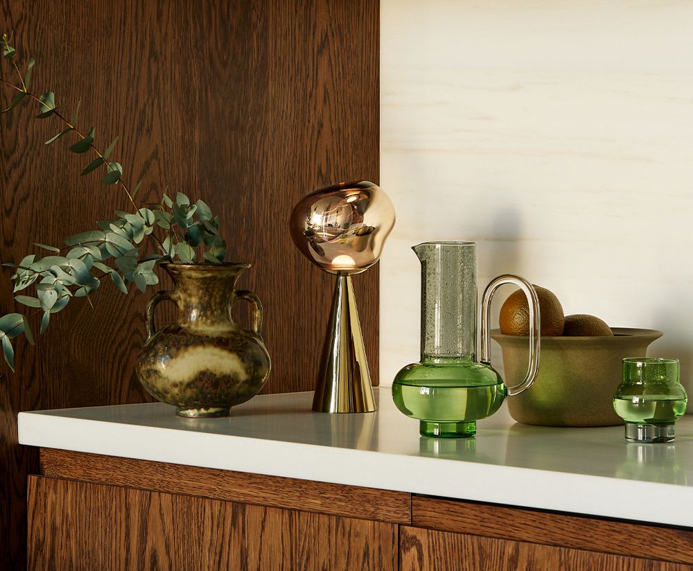 Delicately handmade with subtle levels of green and grey tonal translucency, Bump offers an elegant approach to the alchemical processes of tea making, mixology and floral arrangements.