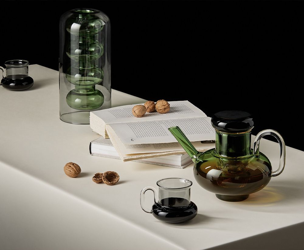 Delicately handmade with subtle levels of green and grey tonal translucency, Bump offers an elegant approach to the alchemical processes of tea making, mixology and floral arrangements.