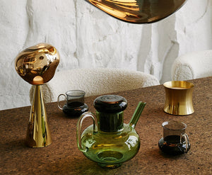 Bump is a family of minimalist, borosilicate vessels designed to serve as the ritualistic instruments of every day drinking and hosting. Delicately handmade with subtle levels of green and grey tonal translucency, Bump offers an elegant approach to the alchemical processes of tea making, mixology and floral arrangements.