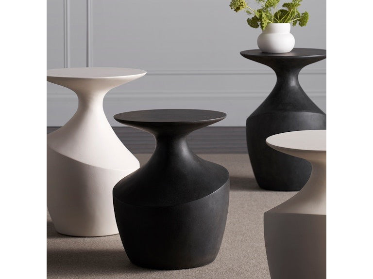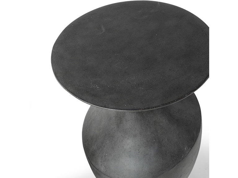 Stonecast side table in a matte charcoal finish suitable for outdoor use.