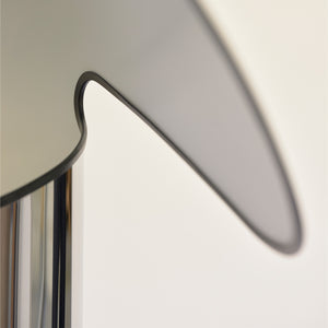 The Chiara lamp, designed by Mario Bellini for Flos in 1969, is an iconic design formed from a simple sheet of polished stainless steel that has been cut and rolled into a cylinder. This origami-like structure hides a lighting source - updated to LED in this re-edition - placed on the floor. The light it provides is reflected and diffused by a large ‘hat,' which resembles a nun's wimple and veil. The re-edition of Chiara uses cutting-edge technology and comprises 2 models: the classic floor lamp in stainless steel with black edges and a new smaller table model in a variety of finishes – aluminum with anthracite edge , dark grey with olive green edges, and pink gold with red edges.