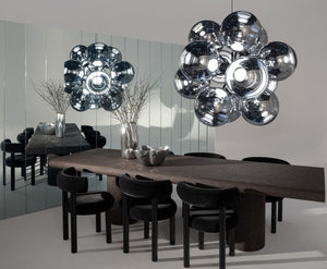 Cloud is a family of bulbous and sculptural pieces made of highly reflective polished aluminum. The collection includes a platter, bowl, short and tall vessel which are expressive handmade artifacts that are hammered and braised in India by skilled artisans.