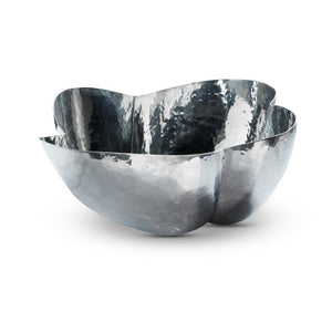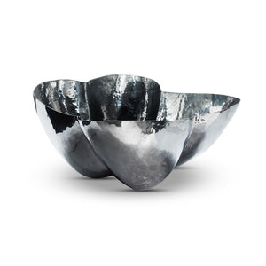 Cloud is a large sculptural bowl made of highly reflective polished aluminum. Handmade in India by skilled artisans, each bowl has unique qualities with every hammer and indentation from stretching and warping the metal being preserved, reflecting the amount of work that’s gone into the design. The silver bowl has a shape reminiscent of seedpods and can be used for a variation of purposes, such as a fruit bowl.