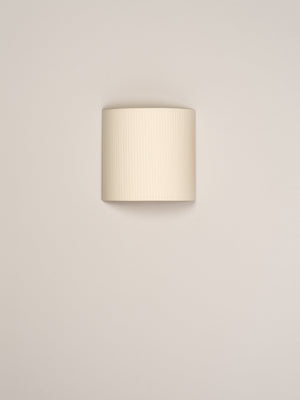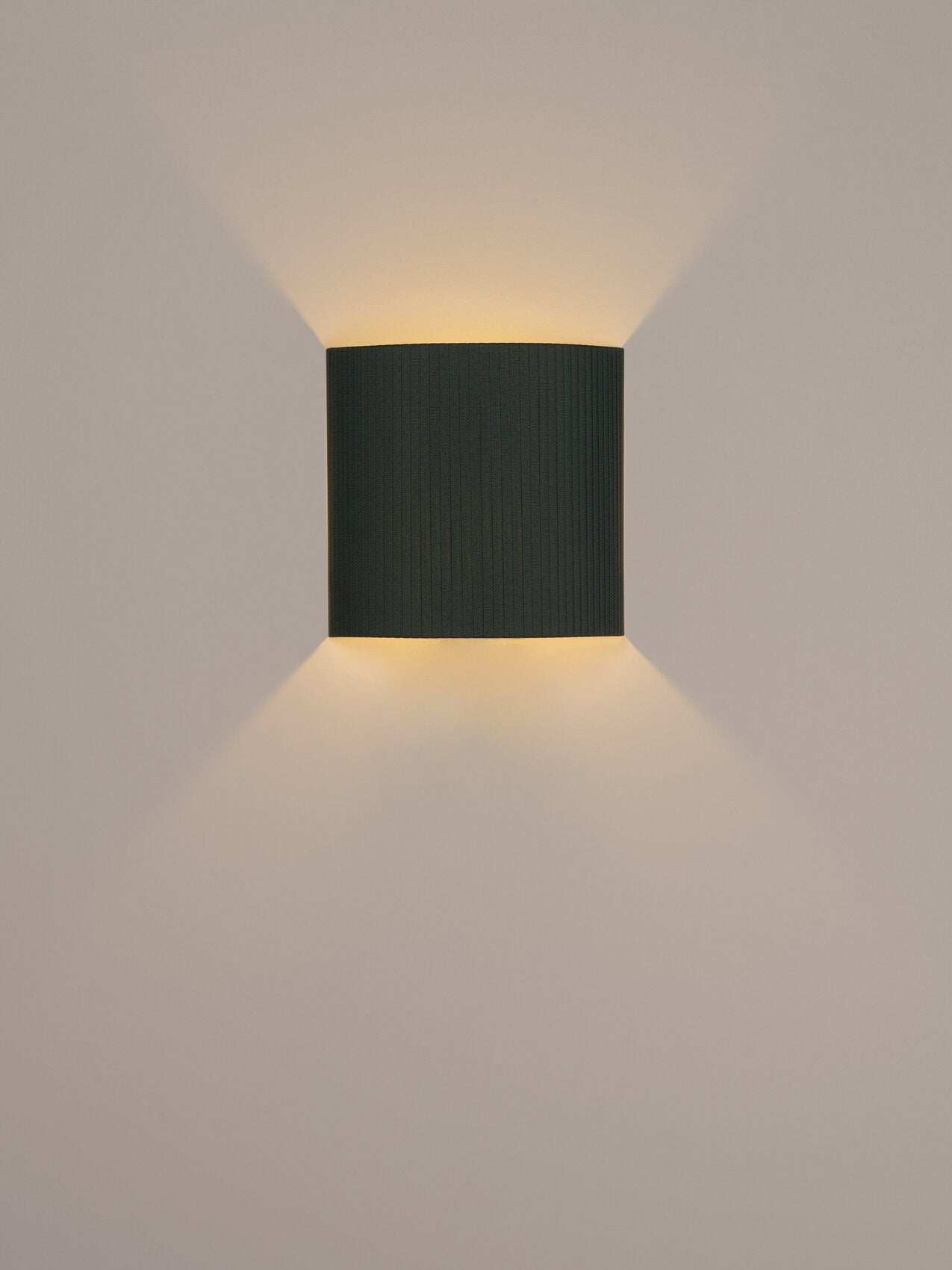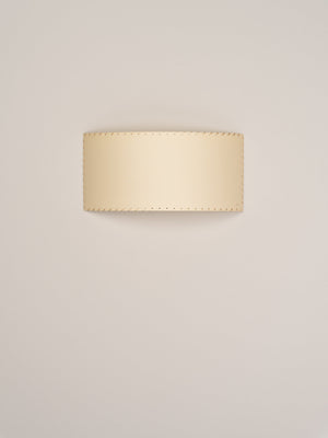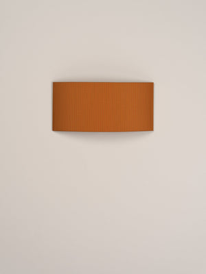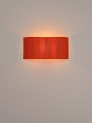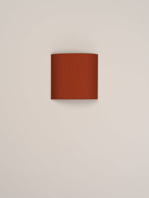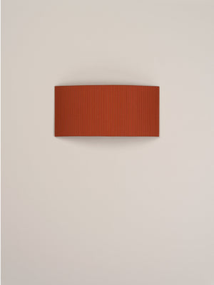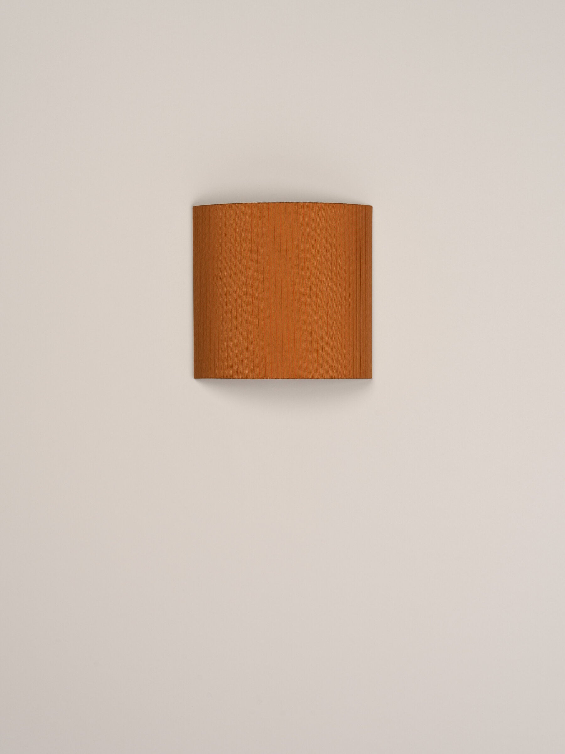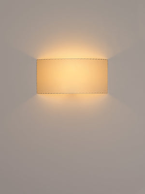Santa & Cole, Equipo, 1994 A minimalist square or rectangular wall lamp with an arched ribbon or parchment shade that prevents the light source from being directly in view from the side. Each ribboned shade is handcrafted. In our search for the perfect hues, we collaborated with the studio Raw Color in Eindhoven (Holland) to create new ribbons. Each woven from three distinct yarns that created new colors: terracotta, mustard yellow and forest green. The three basic colors in the ribbon collection, natural white, amber red and black (available since 1994) complete the range of six colors available. The hand-stitched parchment version portrays the way Santa & Cole promotes warm lighting through natural materials. Clean with a soft cloth. Do not use ammonia products, solvents or abrasives.