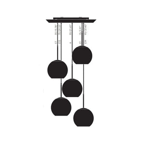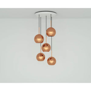 Copper LED Pendant 5 Light System - Round, Same Size Shades
