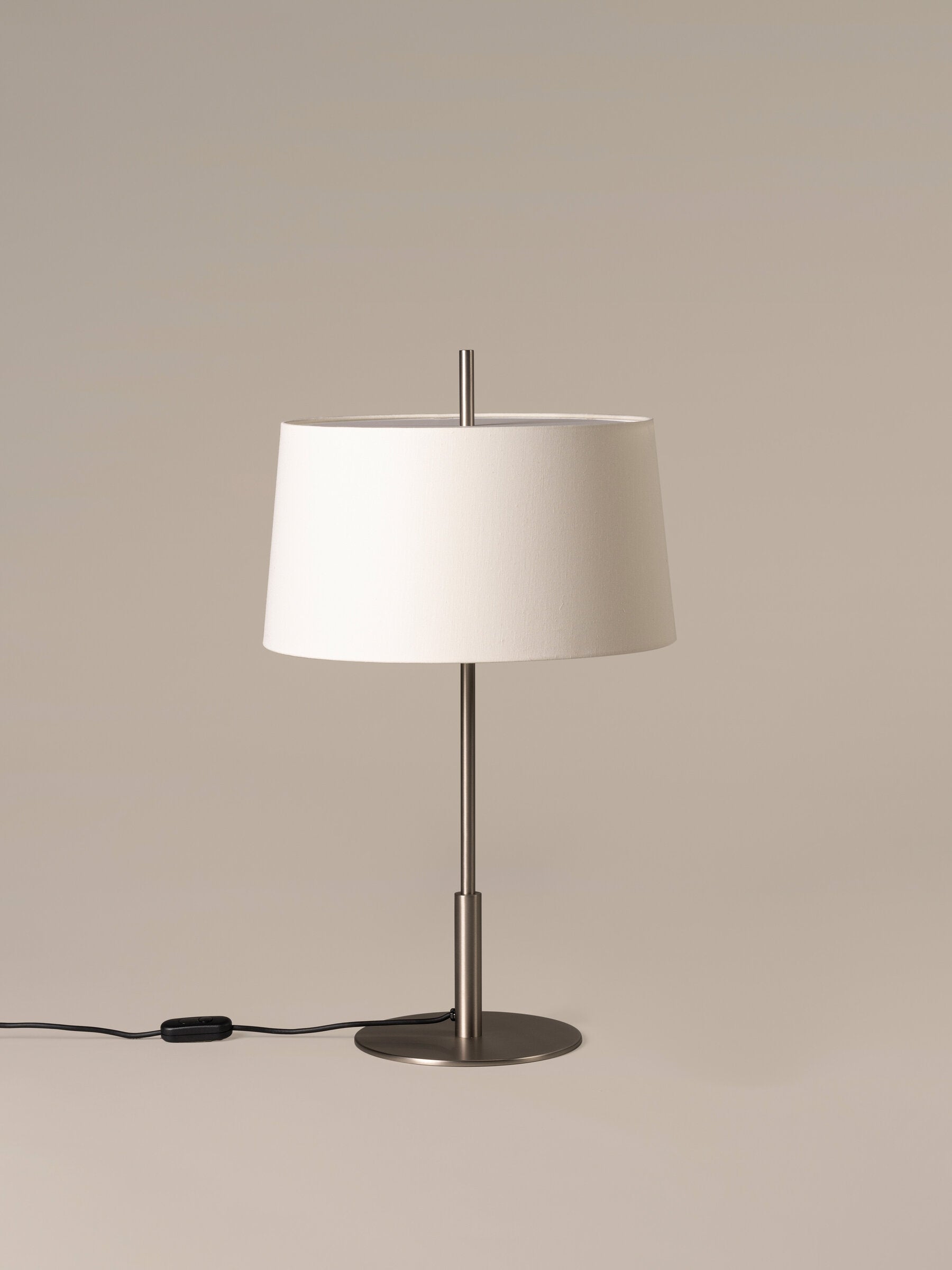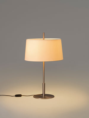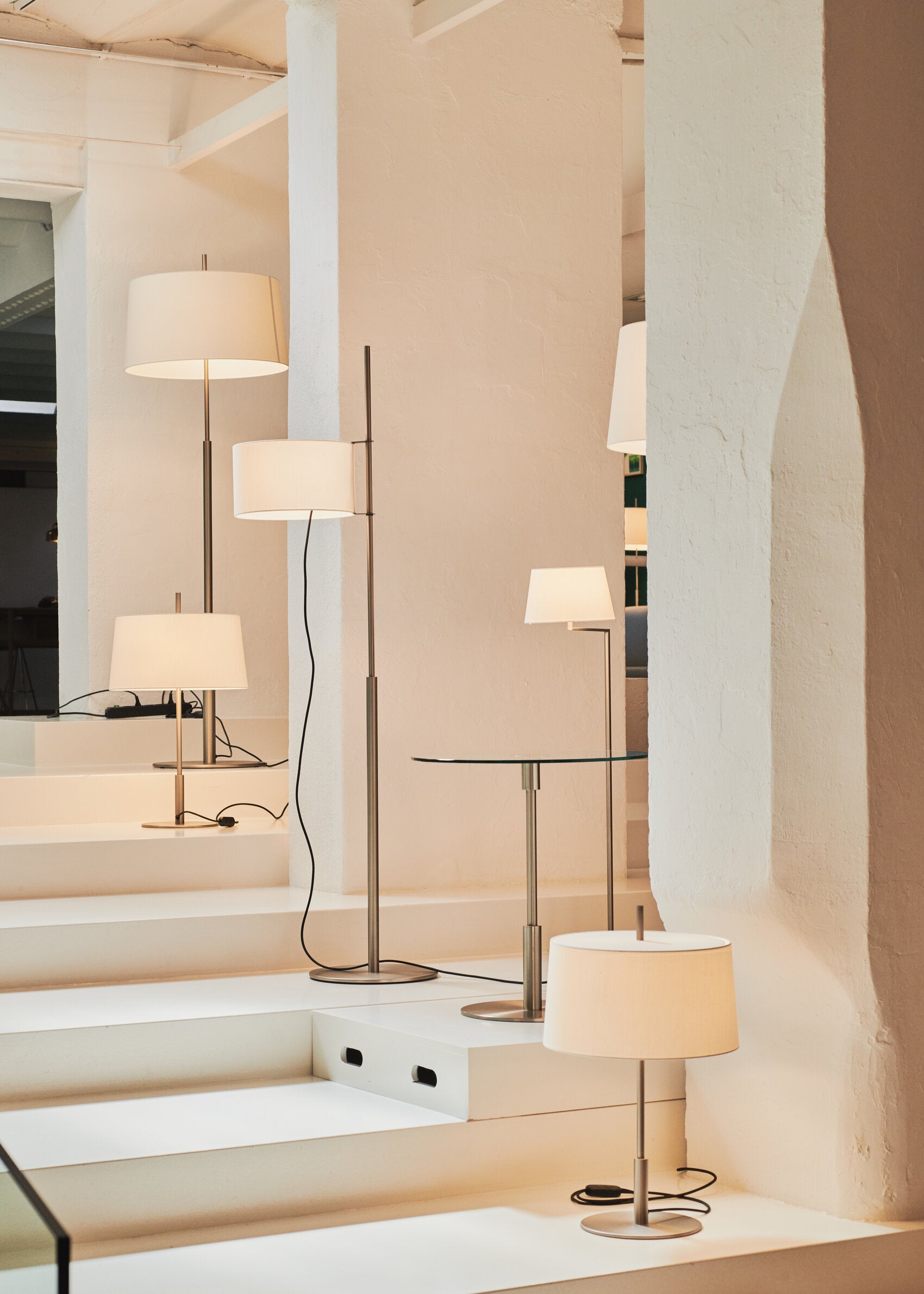Famous architect duo, Federico Correa and Alfonso Mila, once again enlisted the help of Alfonso's younger brother-designer Miguel Mila for this project. They were commissioned to design the lighting in the new office of Barcelona Mayor Pasqual Maragall, who oversaw the city's successful bid for the 1992 Olympics. The administrative office would be visited by a large body of the international political community and was in urgent need of a revamp that would showcase the high standard of Barcelona design on the world stage. Santa & Cole produced the original lamps, and in 1995 the company embarked on limited production of this series of lamps, named after the mayor's wife. The Diana lamp is slender, sturdy and well-defined. The lamp is balanced by a wide metal base, completed with a slightly conical white linen shade. Two bulbs are arranged such as to provide lighting without creating shadows. Diana effortlessly combines a classic air with a modern design, both at home and at the office.