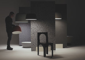 The Djembé collection is designed for repetition, creating musical compositions of light. A bell-shaped ceiling fixture with an exposed interior, Djembé is available in a numerous sizes and bright, airy colors that can be used individually or combined to create a brilliant statement piece.
