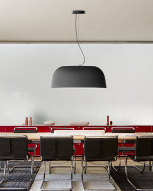 Faced with the challenge of lighting very large spaces, the Djembé collection is growing in every sense of the word, we are introducing new ceiling and pendant versions that are over a meter in diameter, featuring the same finishes as the rest of the collection. The pendant version is notable for its intense visual impact, combining beauty and strength as it projects large amounts of indirect light.