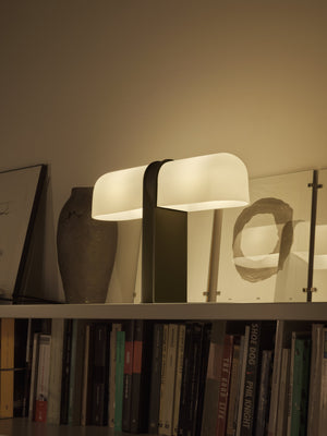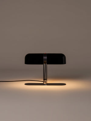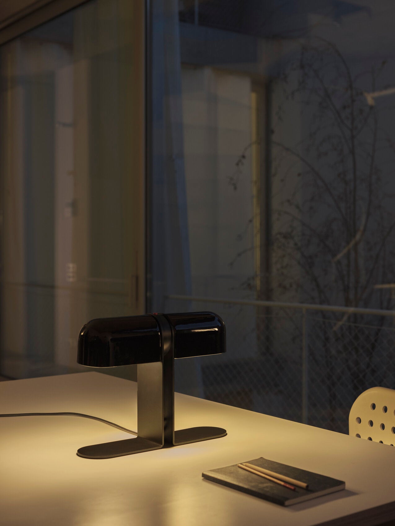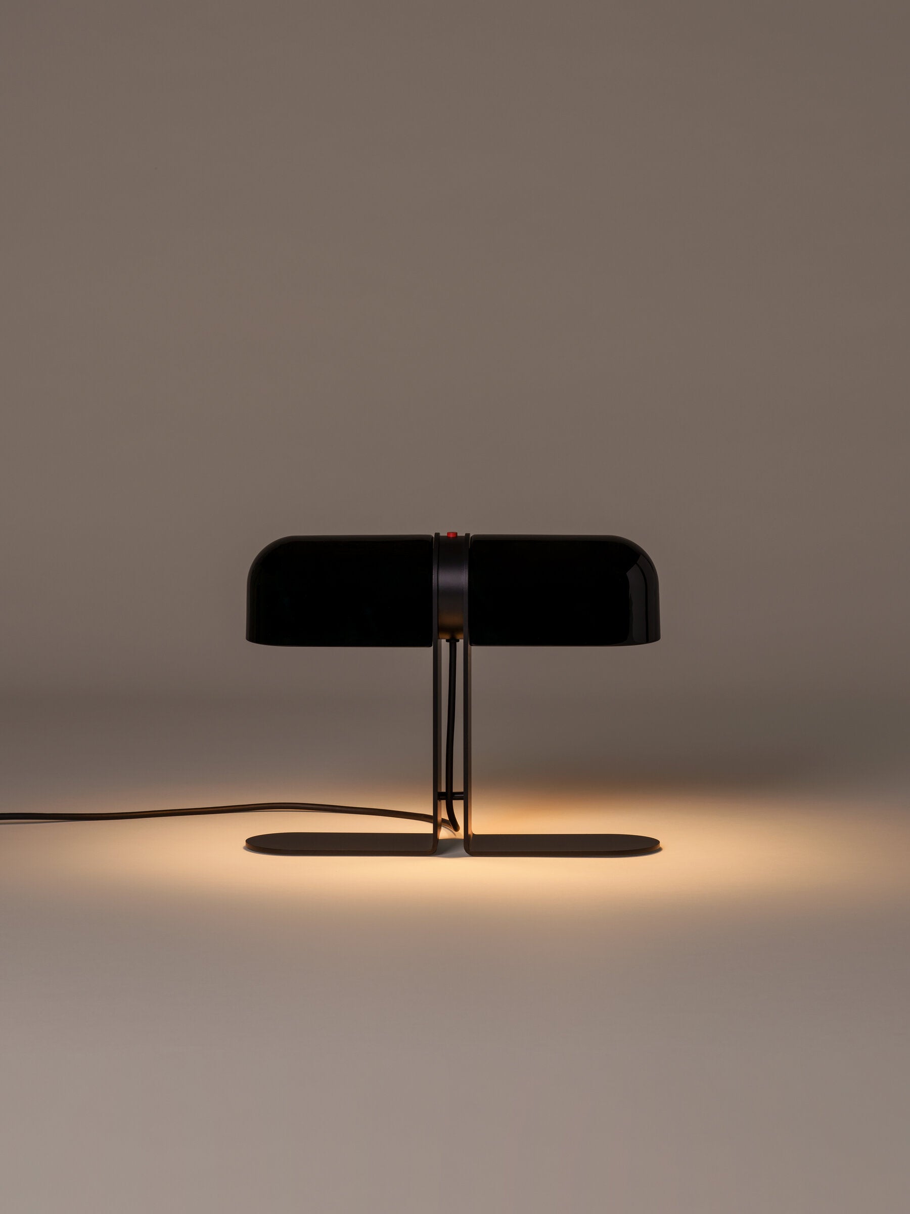 The Duo lamp was conceived by Andre Ricard for "executive desks", not only that good focal light was required when going through extensive paperwork, but also the fact that, in the face of visitors, the view of those who sat in the confidants' chairs should not be obstructed by a large or ostentatious lampshade. Duo fulfills both purposes seamlessly. It illuminates with proximity, and does not interrupt the visual horizon. It is composed by two symmetrical and opposite elements, yin and yang, which complement each other with an excellent sense of proportion. The luminous flux is adjustable by the independent rotation of its glass shades, which can be opaque to focus the light on the work surface, or translucent to provide a more general illumination too. An obvious push button located in the narrow central body acts as a switch for both. It was manufactured during the 1970s and was discontinued in the 1980s due to the onslaught of the new halogen lamps, which tried to emulate the worldwide success of Richard Sapper's Tizio. Today, with the comfort and efficiency of LED technology, the Duo shape makes more sense than ever. The definitive 2023 edition, in collaboration with the author, enhances the aesthetic and functional user experience wherever it is used.