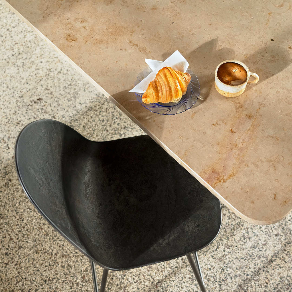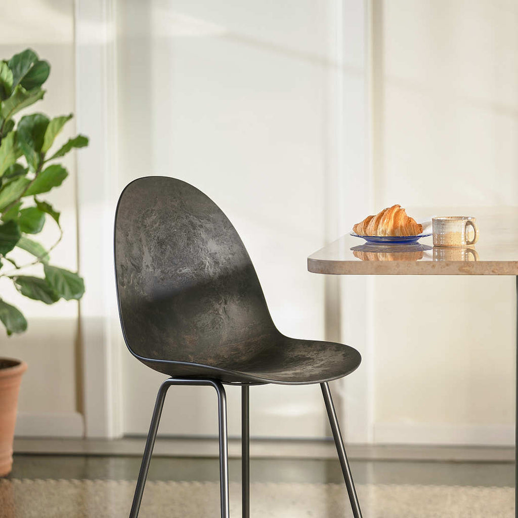 The shell of the Eternity chair is made of Matek®. Innovative technology allows us to recycle fibre-based waste materials with recycled plastic waste. The chair itself is a very comfortable chair with industrial and sculptural features. Eternity is designed for disassembly, meaning that the design allows each component in its purest form to recycle into new production circles. Durable for both private and public use.