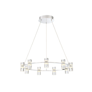 Cylindrically shaped clear and frosted acrylic are split upon a chrome frame. Revel in its unique view as the cylinders reflect its surroundings through the different opacities.