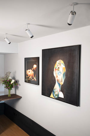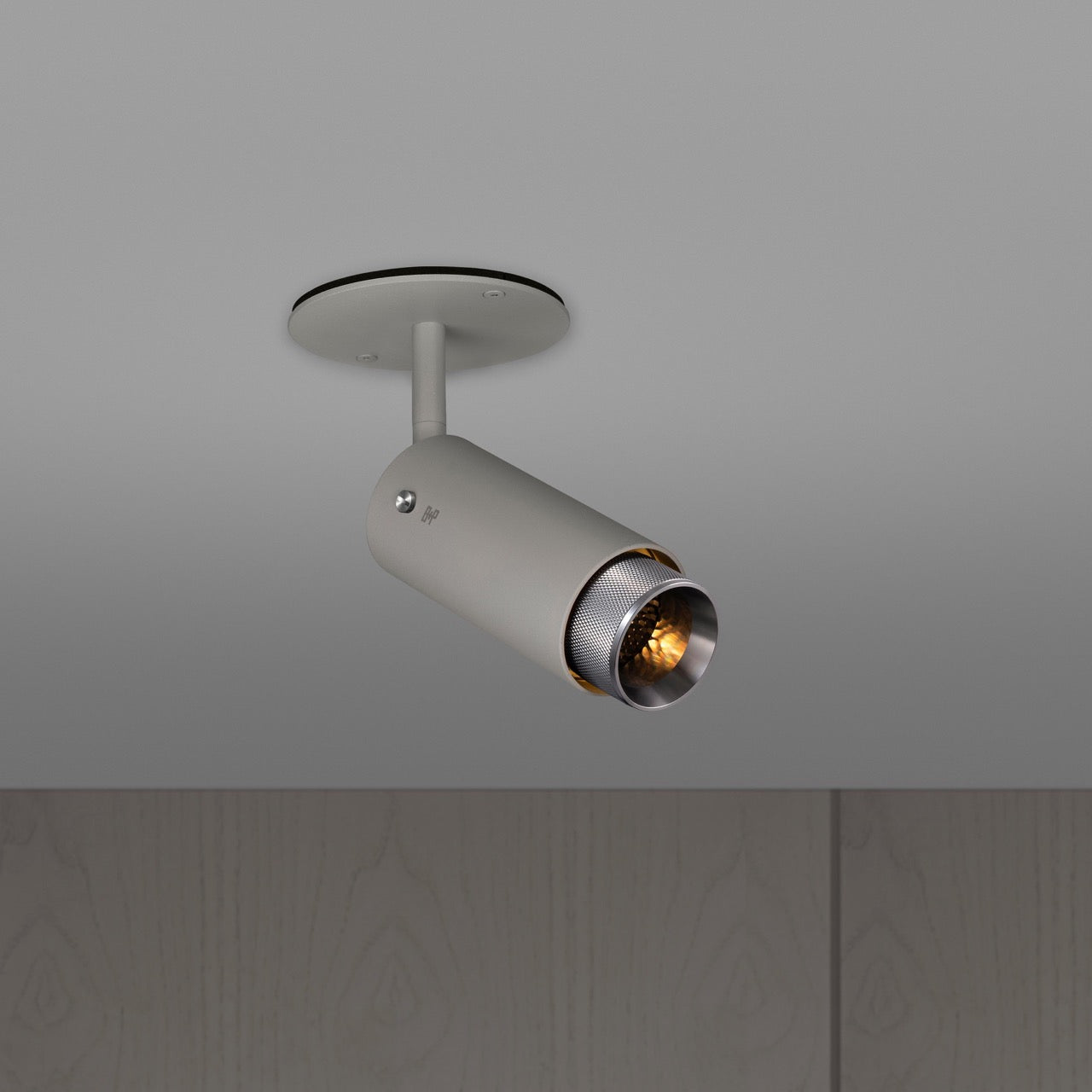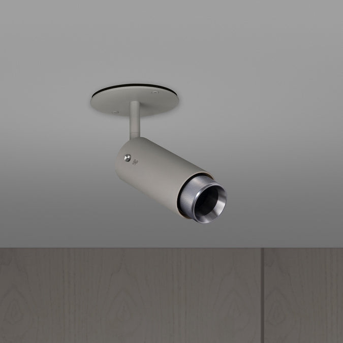 A track spotlight made from stone powder coated metal with solid steel detailing.