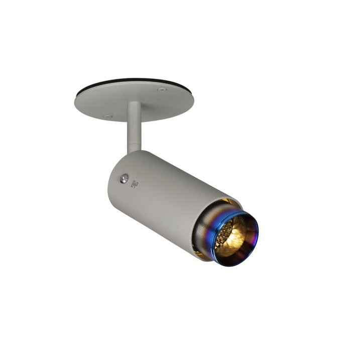 The spotlight features our signature linear-knurl baffle made from solid stainless steel and exposed to excessive heat to create our unique burnt steel finish. A rainbow of blue, purple and yellow, ensure that no two finishes are ever the same. The baffle captures light and creates a delicate metallic glow, whilst a honeycomb filter emits a precise, non-glare, directional spotlight. The spotlight also features machined torx screws made from solid stainless steel.