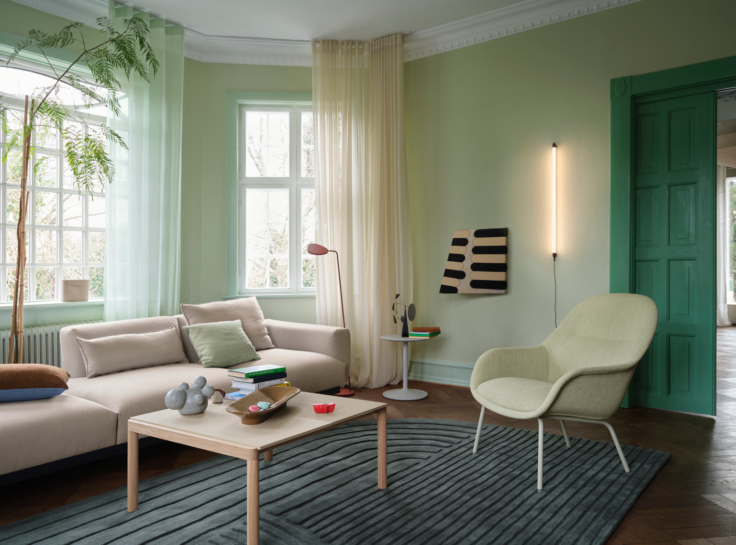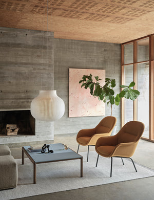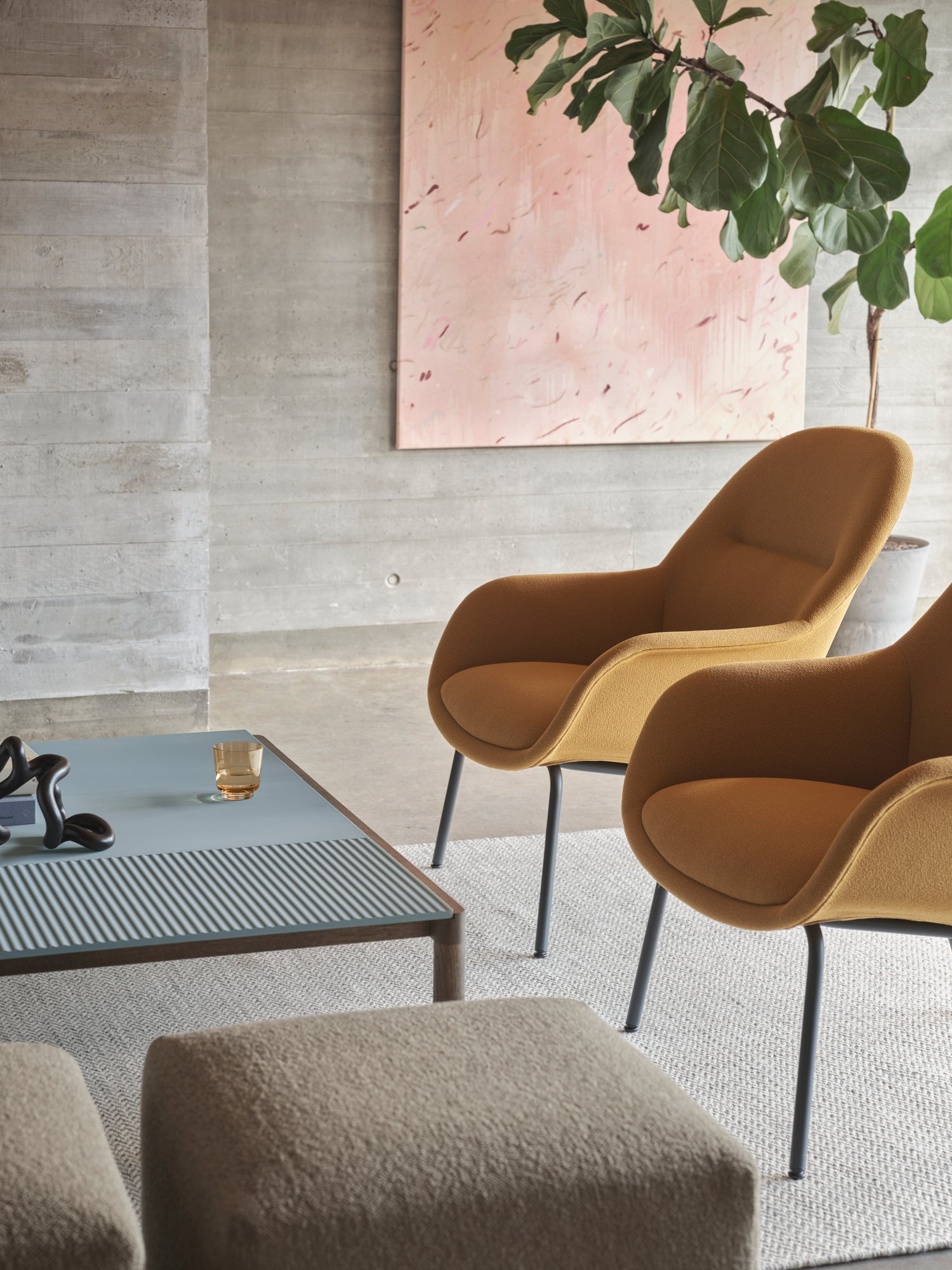 The Fiber Lounge Armchair features a generously spacious seat and embracing curves that embody the elegance of the Fiber Series in a softer, more inviting form. The chair's shell is made from 100% recycled plastic, supported by a tube base in powder-coated steel.