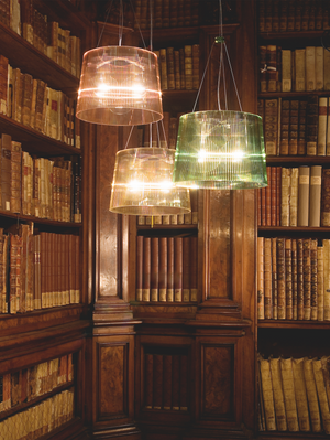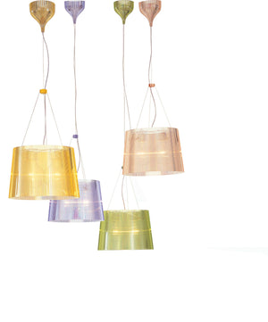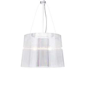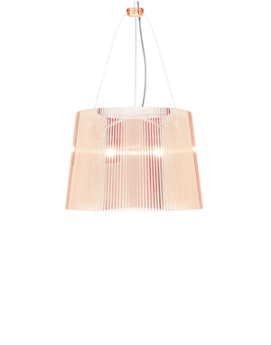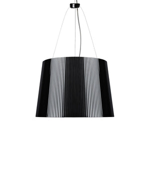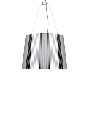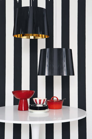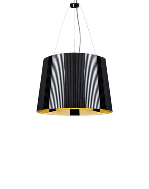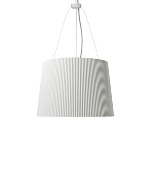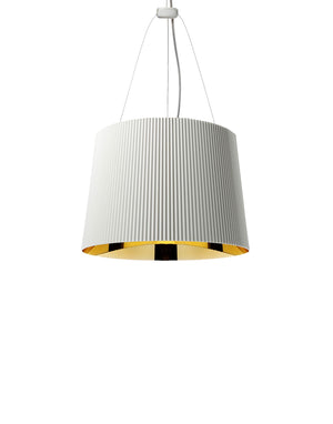 Gè is a suspension lamp attached to the ceiling with a decorated rosette suggestive of antique Venetian chandeliers. It comes with a 37 cm diameter pleated lampshade. The cable can be adjusted in height from 45 to 230 cm.