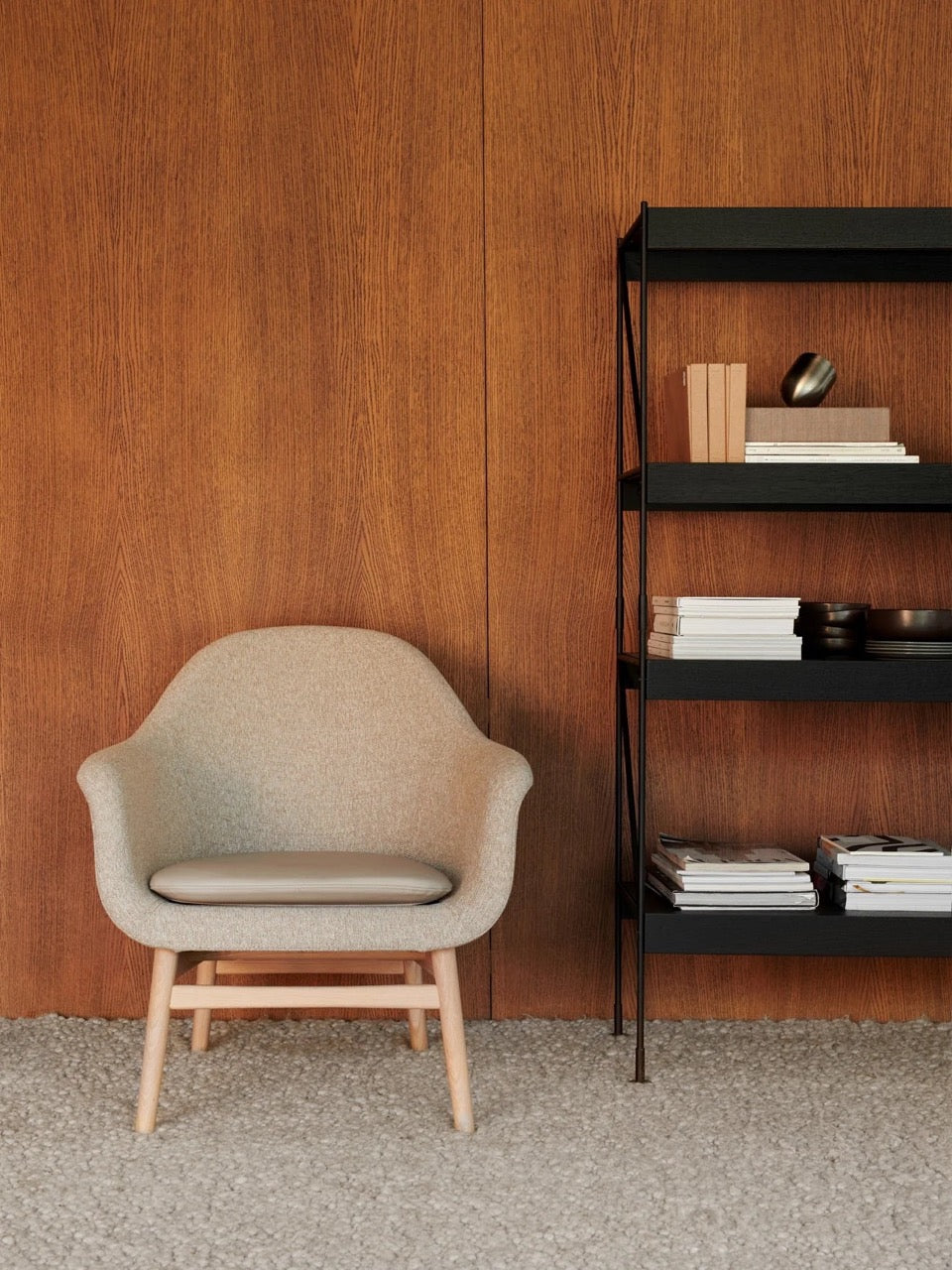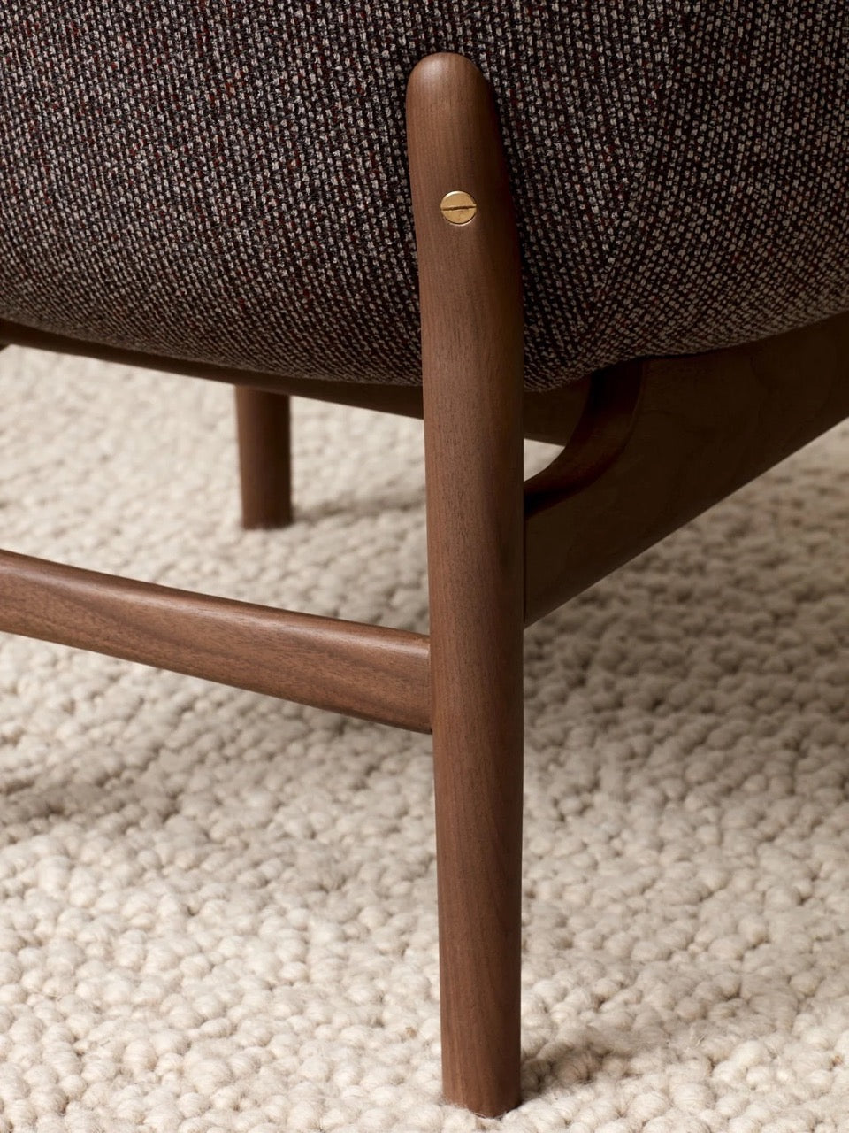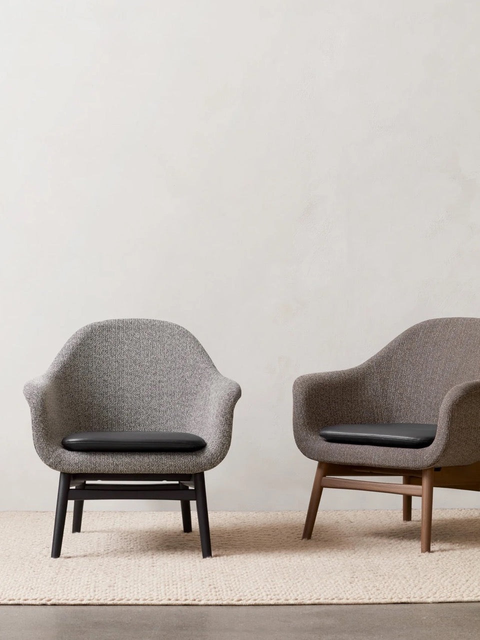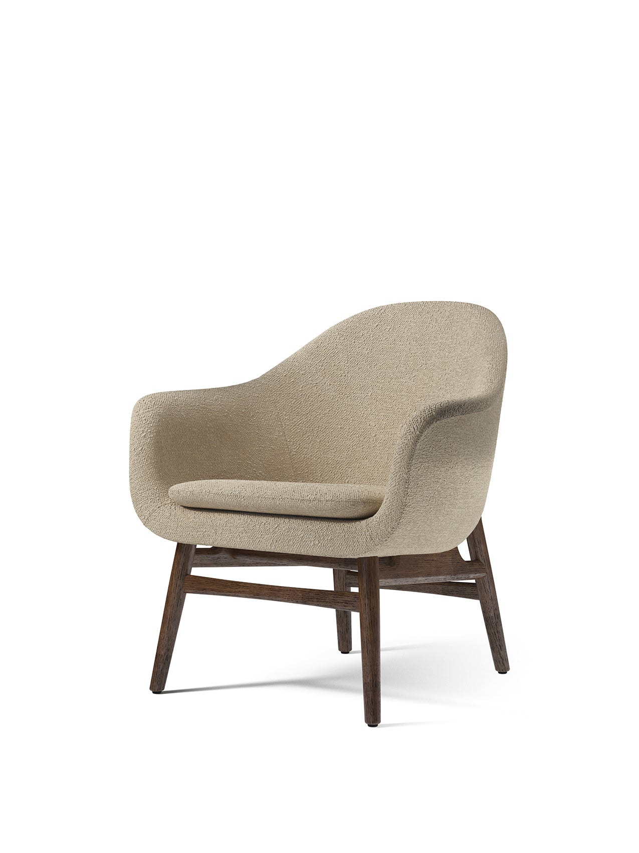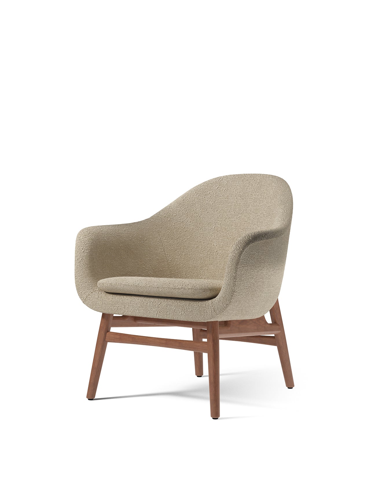 The new Harbour Lounge Chair has the minimalist expression as its predecessors. Resting on a solid wood frame, offered in natural, dark stained or black oak and walnut, its embracing shell is available upholstered in a range of tactile yet durable fabrics in contemporary colorways. The low-pitched frame features rounded legs and subtle joinery details, and the generous shell has a wide back, angled for comfort and supporting the body while providing space to relax. Ideal for relaxing into after a long day, it features the collection’s characteristic curving armrests and a luxuriously over sized seat complete with a corresponding cushion.