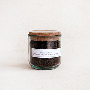Our single- origin black peppercorns are grown in the lush hills of Sri Lanka on a bio-dynamic, organic farm. This heirloom variety of vine-ripened peppercorns has notes of red wine, plum and fig with a robust spicy finish.