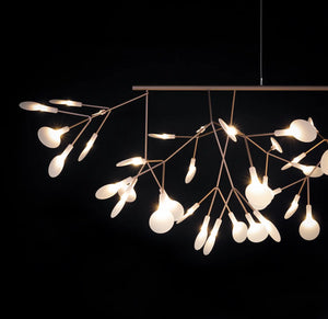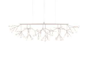 Heracleum III Linear, a Moooi Original, by Bertjan Pot combines elegance and function. Its long frame and upward-sweeping blossoms make it ideal for dining tables or kitchen islands. Powered with Electrosandwich® by Marcel Wanders Studio, it creates a warm glow with bright LEDs. Available in four colours and compatible with the Wireless Wall Switch.
