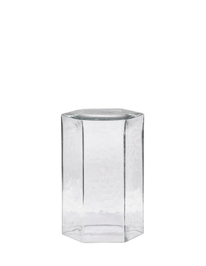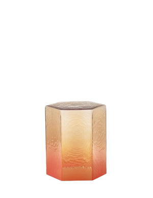 These unique tables are inspired by the perfect hexagonal structure of quartz crystal, the very material that gives birth to glass. Its liquid texture is captured on the rippled surface in a fascinating play of light and shadow. Colors pay homage to quartz varieties in nature. Enjoy them as a single side-table or create brilliant crystal islands by combining their hexagonal shapes.