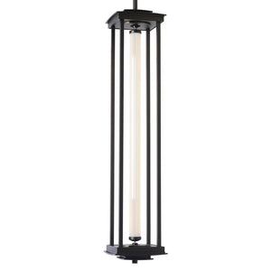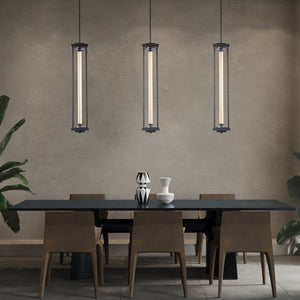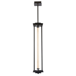 Athena 1-Light Large LED Lantern is a contemporary lantern-style pendant light featuring a long, clear, scalloped glass tube over inner opal glass cylinder. This LED module is suspended between conductive perches within a tall, vertical open metal structure. LED generally provides tens of thousands of hours of light, but it's good to know that should the need arise, this module can easily replaced. Multiples can be hung in dramatic effect in stairwells or foyers. With their Multi-Stem system, heights can be staggered and customized to suit the space.