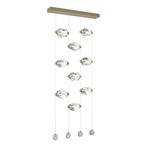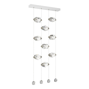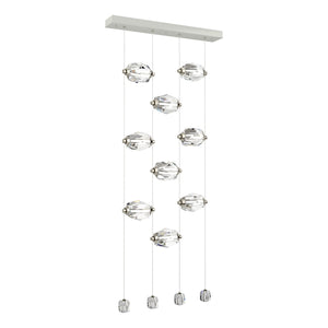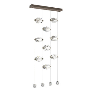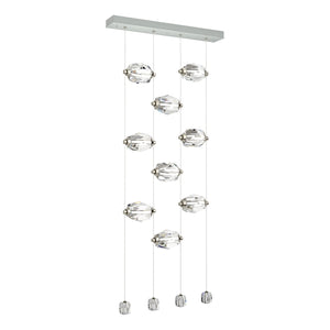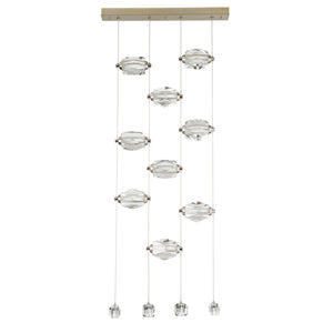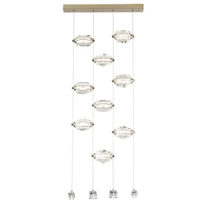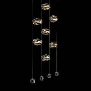 Now, this delivers the "Wow factor" in spades! The 9-Light LED Pendant features nine large faceted crystals positioned horizontally, with four smaller crystals at the ends of each of the four low-voltage cables. Each large crystal can be moved up-or-down on the cable "rails" to custom-place each one as best suits the space. Both elegant and modern, the Gatsby defies past classic boundaries of yesterday's crystal chandeliers.