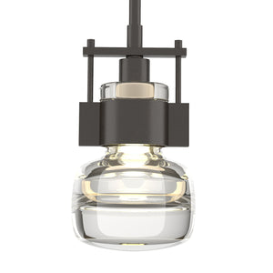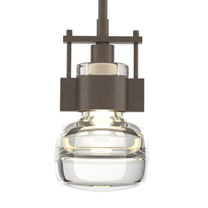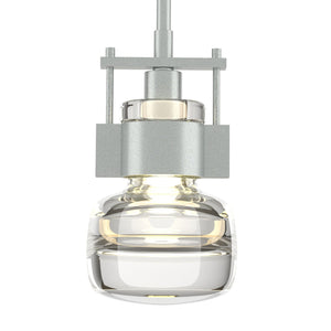 The minimalism of our Cuff Pendant's design puts the focus on two strong and well-crafted components - the heavy steel cuff and the thick, blown-glass captured within the cuff. Created by artisans in Vermont, each piece is unique.