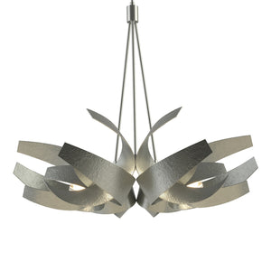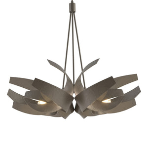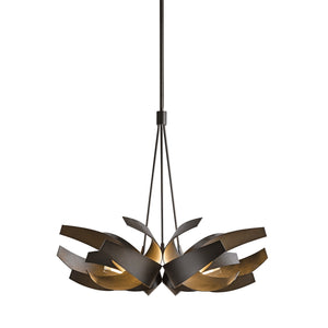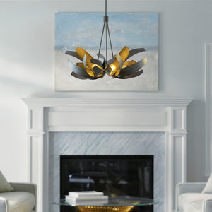The large Corona Pendant is the light for those that want to make an entrance - or other key area - grander. This pendant is handcrafted by Vermont artisans who shape forged steel into gentle curves before assembling. A golden glow is delivered via clear/frosted glass diffusers that give the impression of warmth.