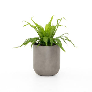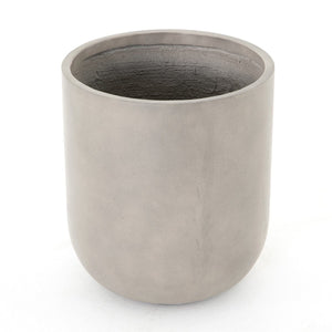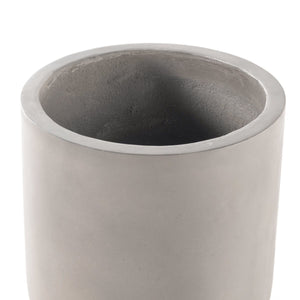 Grey-finished concrete and round shaping make for a naturally sleek planter, indoors or out. Cover or store inside during inclement weather and when not in use.