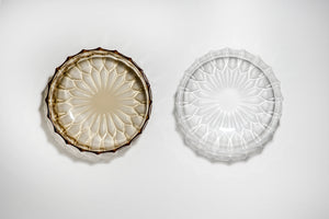 A comprehensive line of plates, trays, glasses, bowls, carafes, coffee cups and sugar bowls. The line's individuality is down to the fact that each model presents a different pattern inspired by the moulds that were once used for making jellies. The overlapping sections and colourful juxtapositions create an imaginative yet discreet ensemble that is both creative and sophisticated.