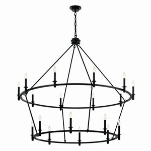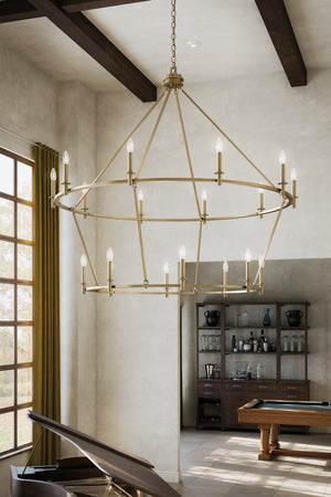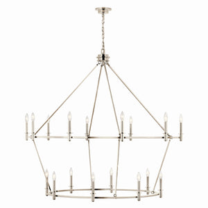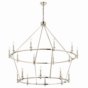 Delicate in nature, the Carrick 2-tier chandelier brings a light and airy look to a traditional, classic design. Inspired by historic ring forms, this chandelier features a wide, flat ring and candlesticks that appear to float off its edge, giving guests a unique perspective, from every angle. Subtle bobeche detailing on each candlestick completes the design.