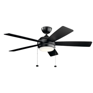 This transitional 52" Starkk LED ceiling fan in Satin Black highlights clean, strong lines making a perfect fit for your décor.