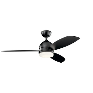 A clean look and attractive lines adorn this Satin Black three-blade contemporary LED fan from Kichler.