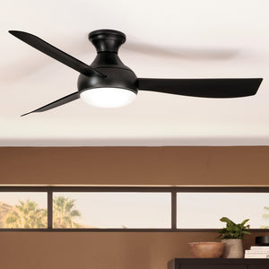 Versatile in both style and function, the Ample 54-inch ceiling fan is designed with convenience in mind. Its simple, modern form works well in soft modern environments and satin etched cased opal glass provides a beautiful, ambient lighting which delivers an overall illumination to the entire room. Take advantage of dual mount options by installing as a flush mount in low-ceiling applications or with a downrod for various applications. Its CCT Selectable light module provides options to change light color between 3000k and 5000k during installation and 65k frequencies help combat remote control interference in hospitality and multi-family applications. Never has a fixture been so simple yet so fantastically complex in all the right ways.