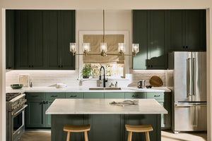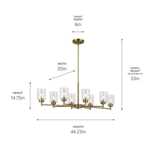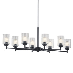 The modern Winslow 8 light chandelier in a Black finish with Clear Seeded glass shade pair beautifully with the linear arms, bringing light and dimension to a space.