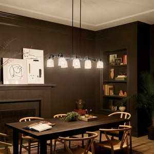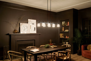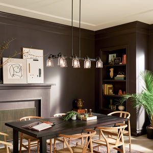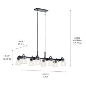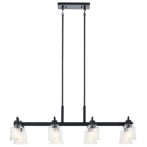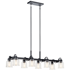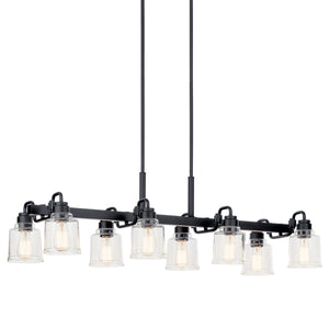 The Aivian 42" 8 linear light chandelier scoffs at clichés with its industrial-style arms in a Black finish. Its angled knurled detail is a welcome surprise. When vintage bulbs are used, this piece really comes into its own. It's both refined and edgy, making it truly one of a kind.
