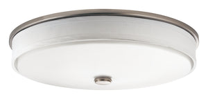 The Ceiling Space 17.25" LED Commercial flush mount features a classic look with Brushed Nickel finish and a linen shade and white acrylic diffuser. The Ceiling Space flush mount is perfect in several aesthetic environments including modern, traditional and transitional.